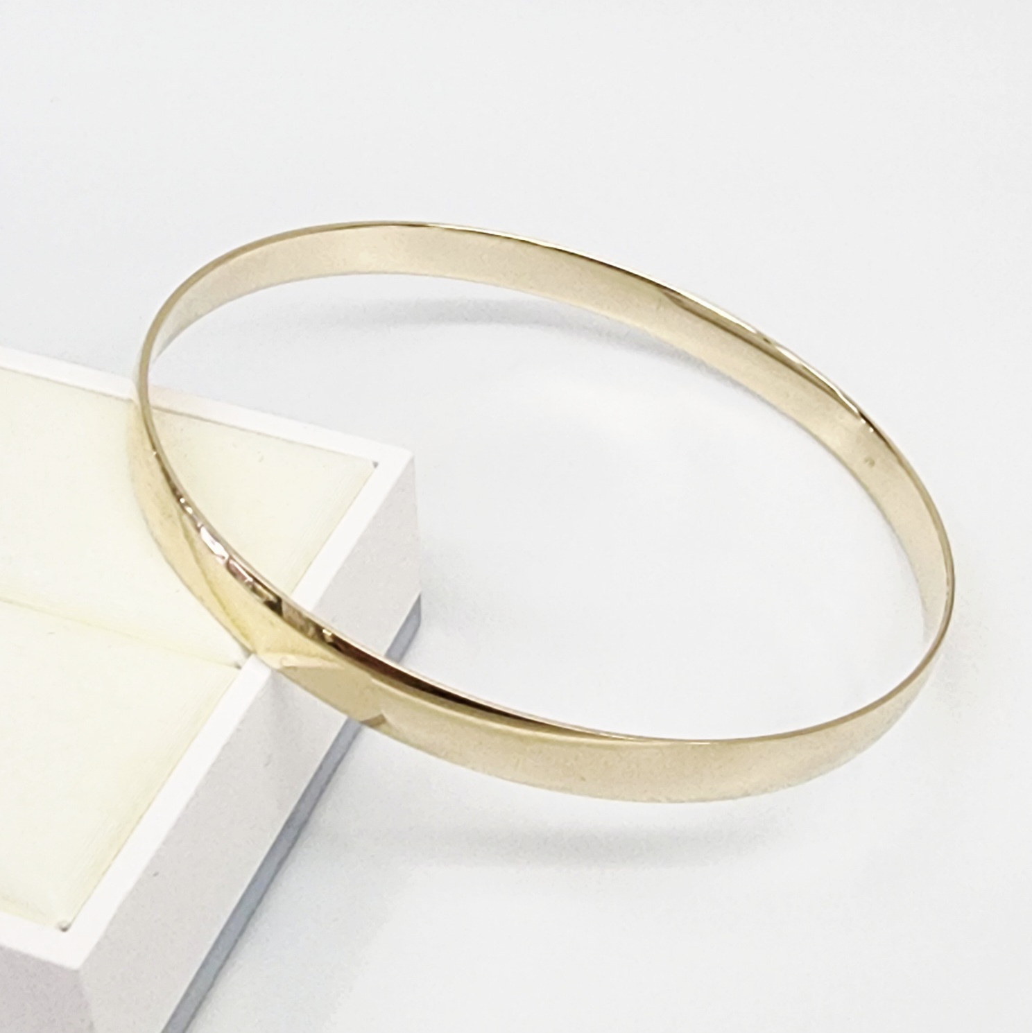 Made as a solid bangle with a 1.2mm wall thickness, it offers excellent durability and a reassuring weight that reflects true quality—never hollow or lightweight. The warm glow of 9ct yellow gold adds a classic elegance, making this piece suitable for both special occasions and refined daily wear.