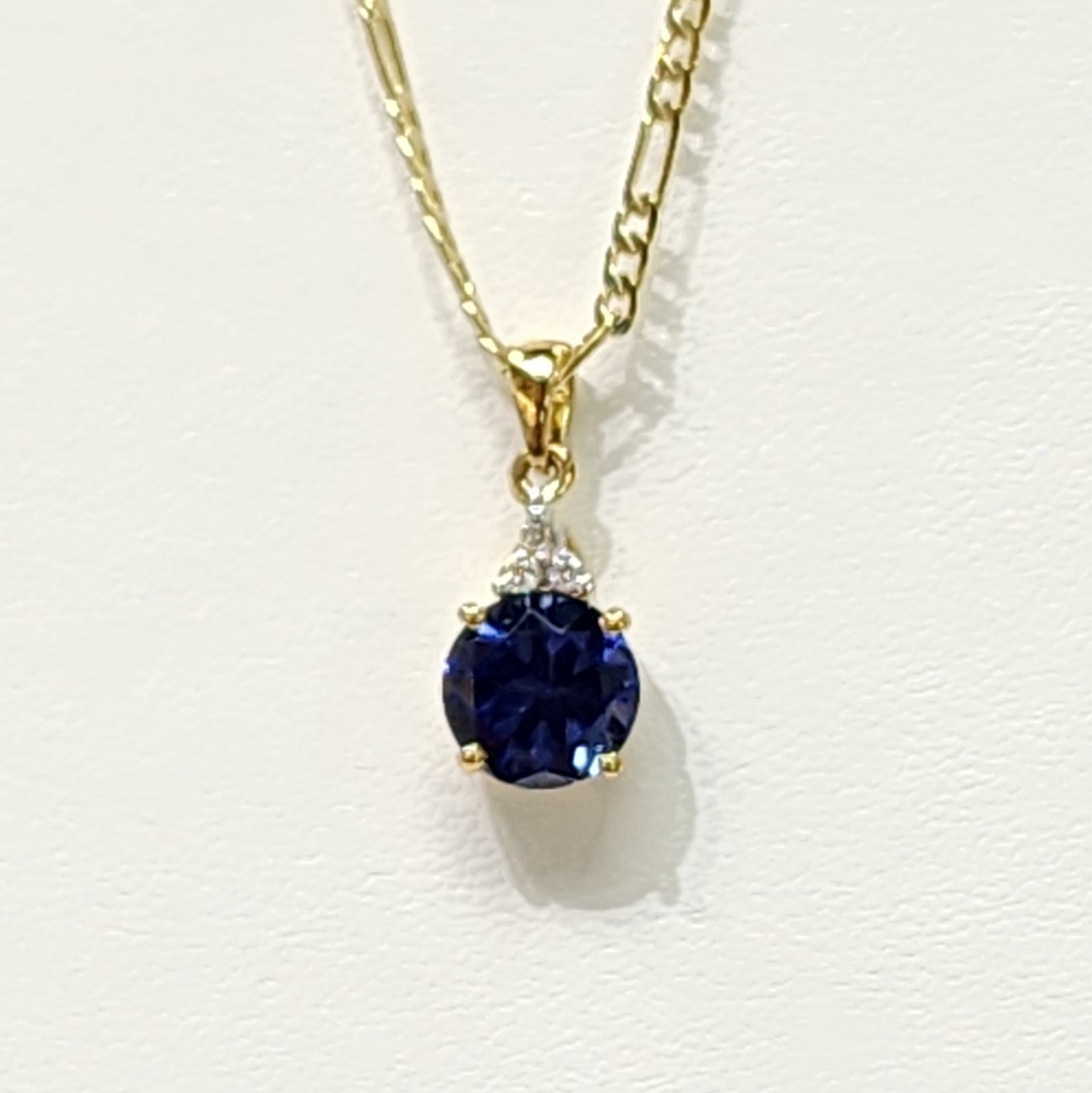 9ct Yellow Gold Created Blue Sapphire with Cubic Zirconia Drop Pendant