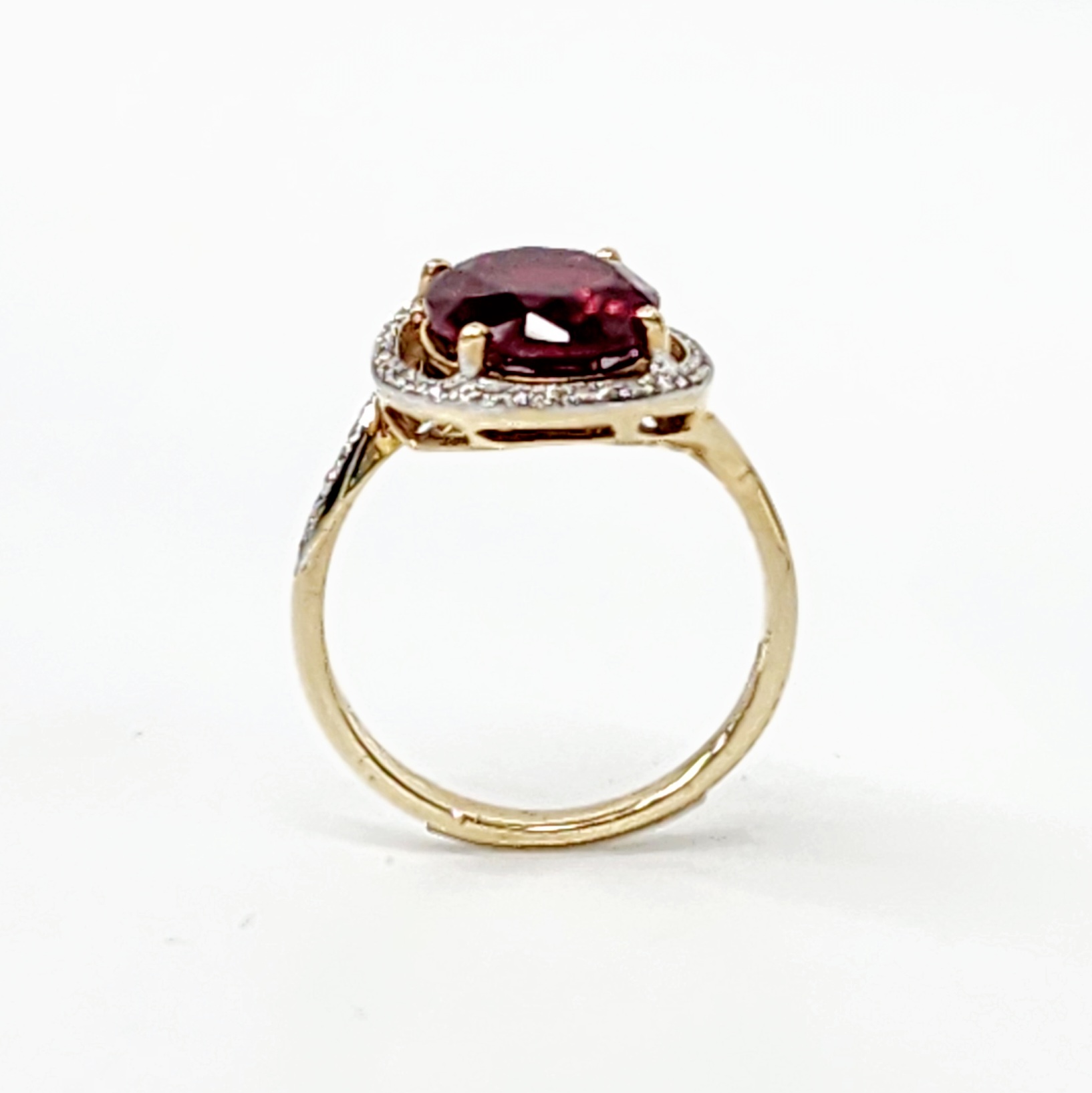 9ct Yellow Gold Created Oval Ruby with Natural Diamonds Ring