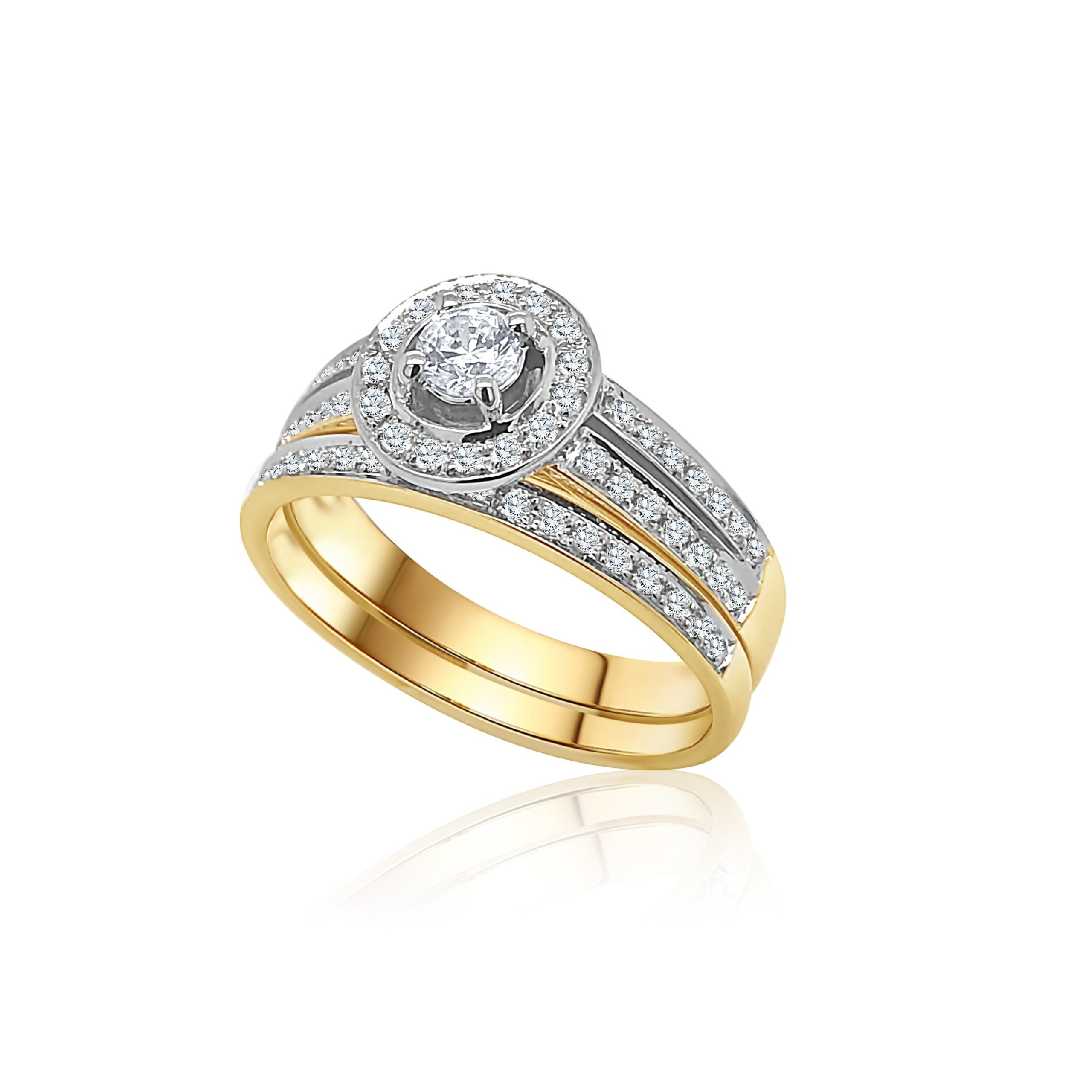 9ct Yellow Gold Cubic Zirconia 2 Piece Halo Bridal Set