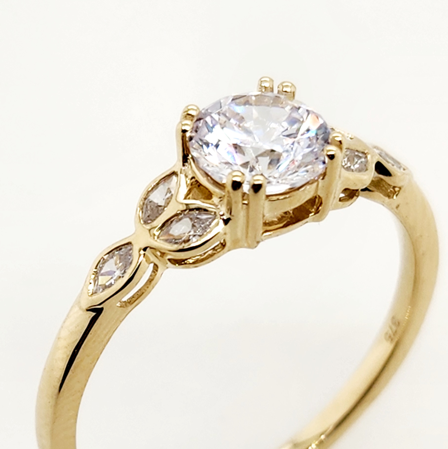 9ct Yellow Gold Cubic Zirconiac Engagement Ring Vintage Petal Vine Leaf Band