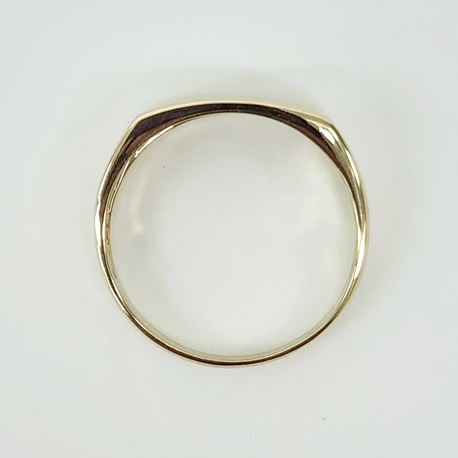 Crafted in rich 9ct yellow gold, this distinguished men’s signet ring features a curved rectangular face with smooth, rounded edges for a refined, modern finish. The top signet face measures 6.40mm in width and 16.00mm in length, offering a substantial presence without being bulky. The band gracefully tapers to a comfortable 3mm width at the back, ensuring an elegant profile and a snug fit.