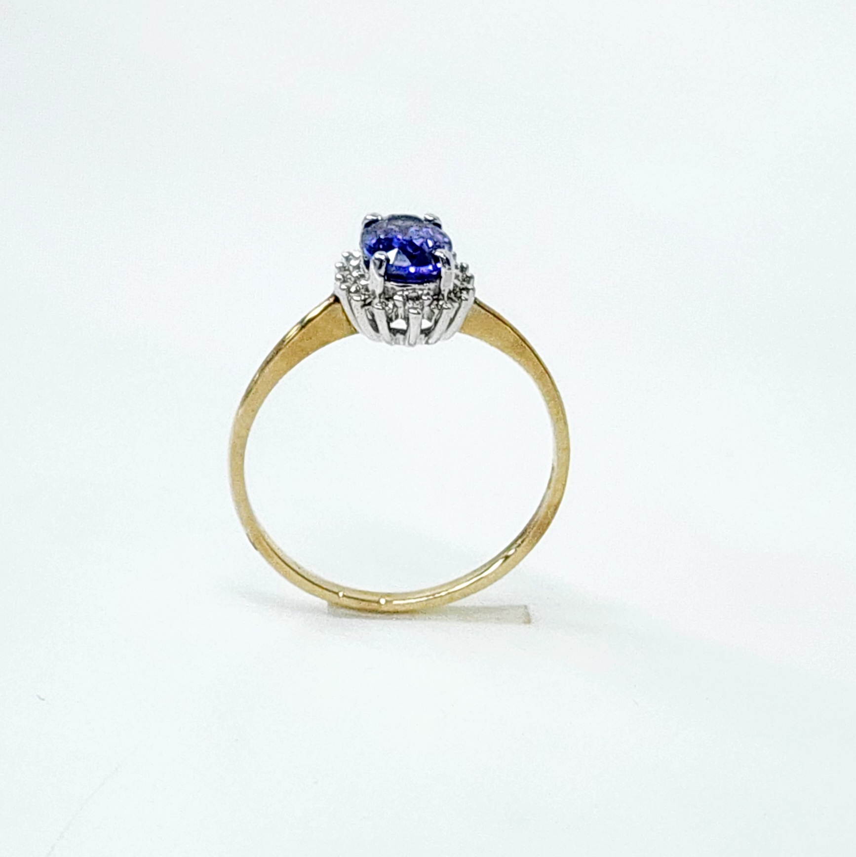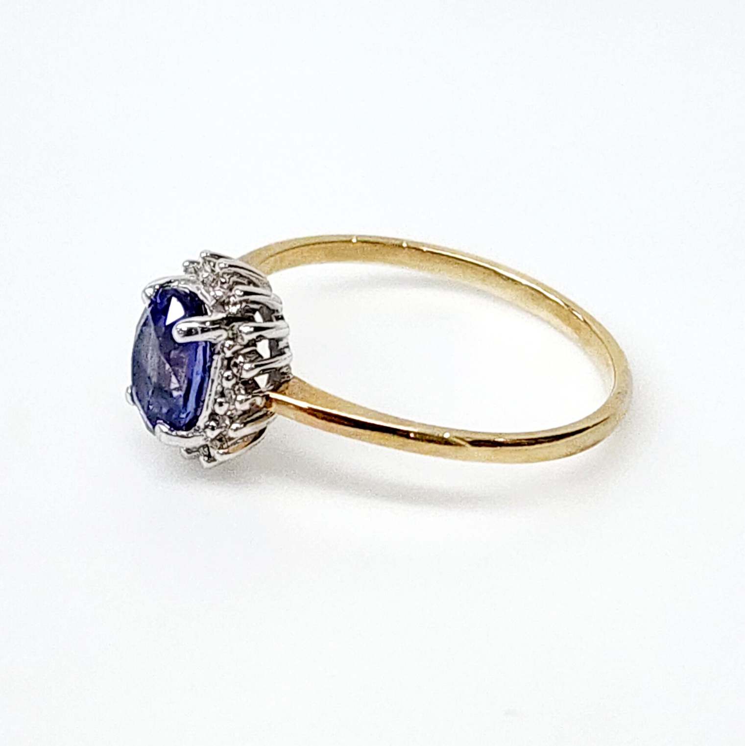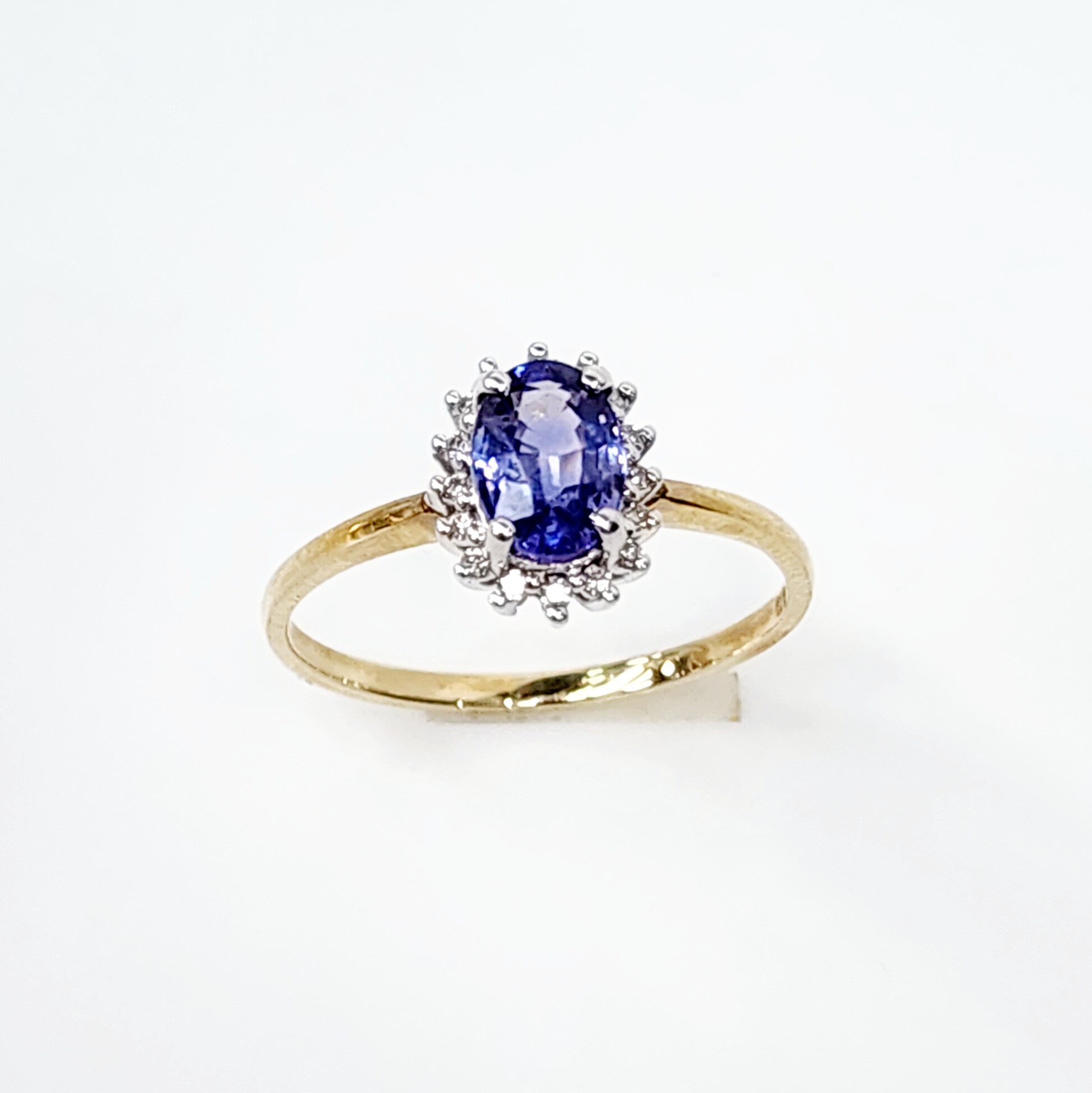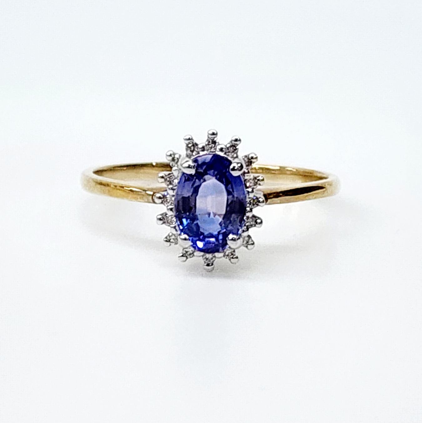 9ct Yellow Gold Diamond Cluster with Ceylon Sapphire Ring