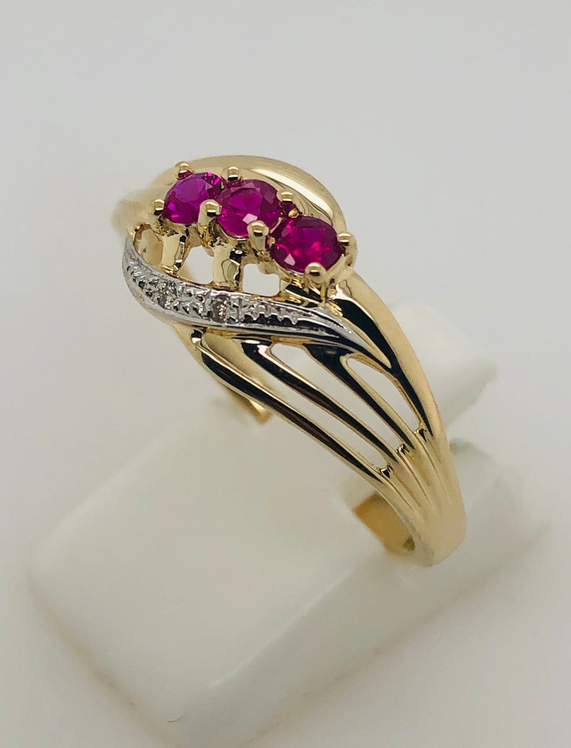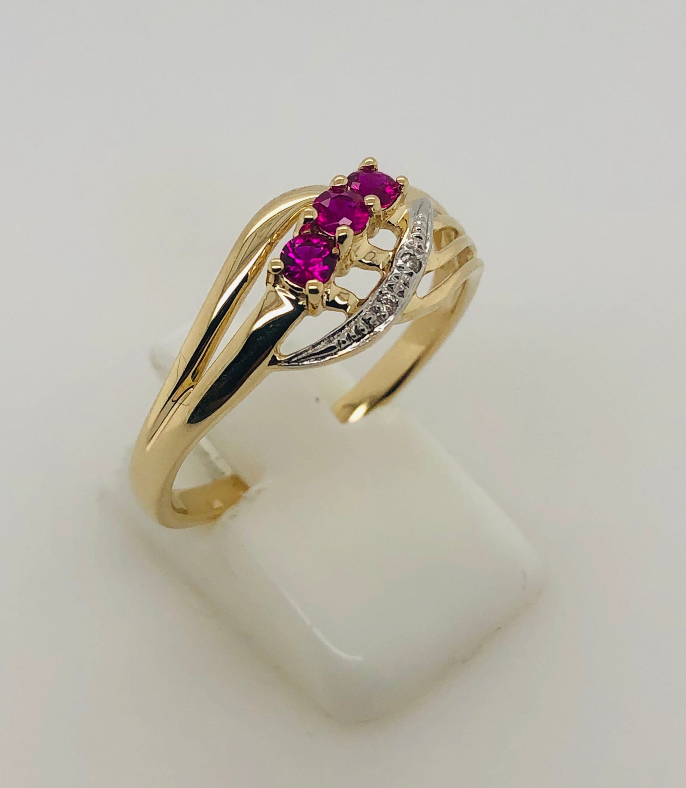 9ct Yellow Gold Diamond & Ruby Crossover Ring