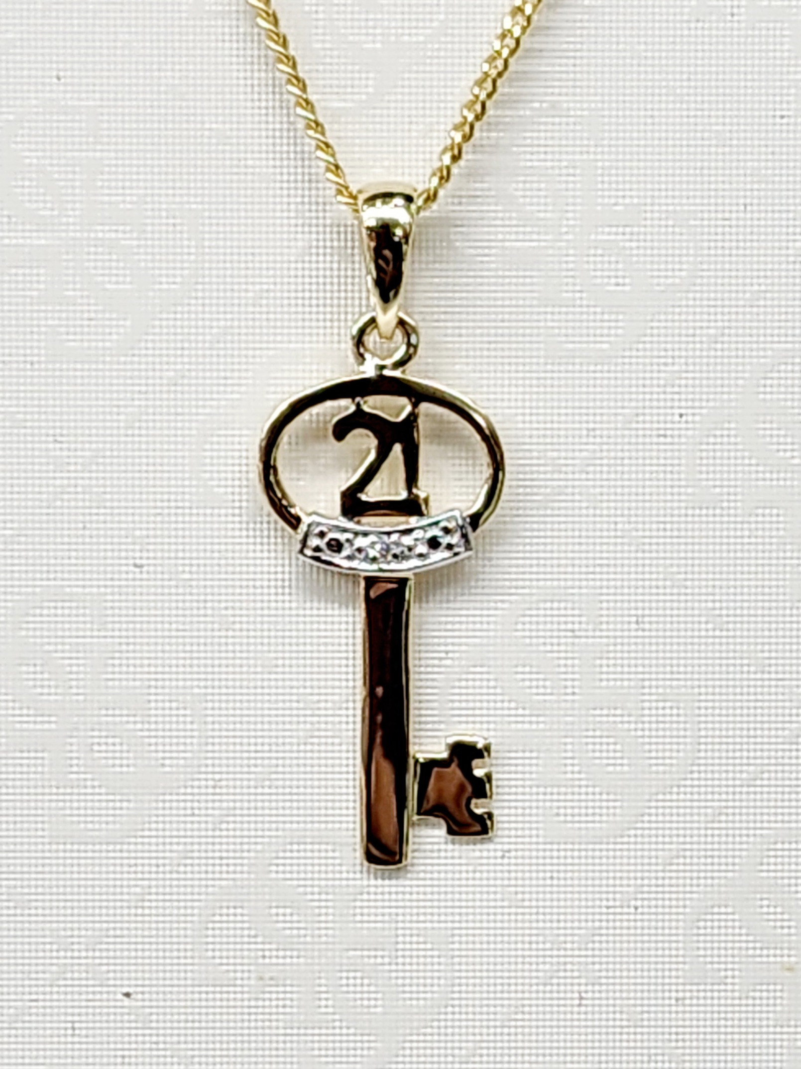 9ct Yellow Gold Diamond Set 21st Key Pendant