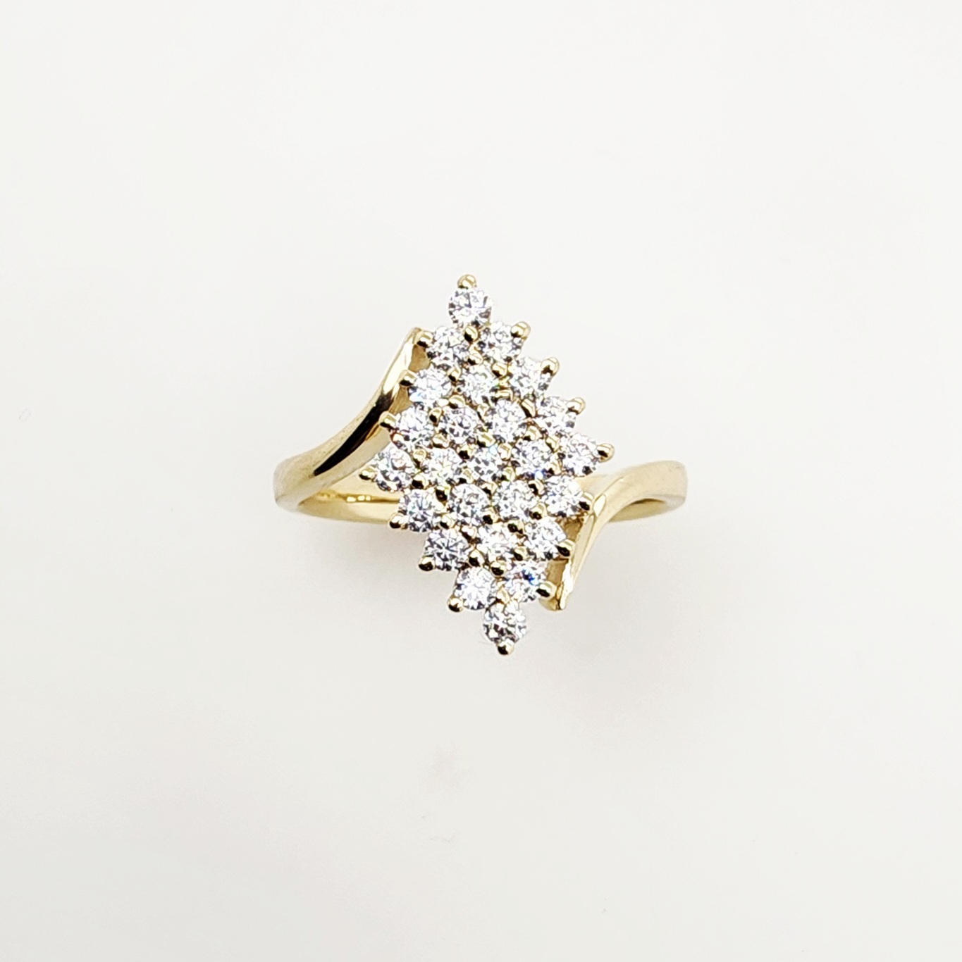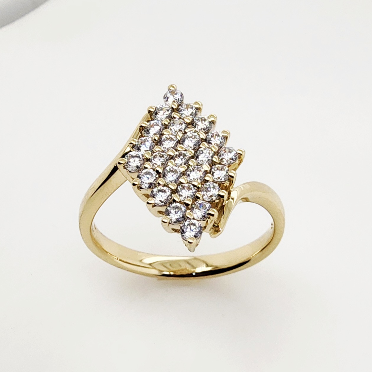 9ct Yellow Gold Diamond Shape Cluster Ring with Round Brilliant Cut Cubic Zirconia Setting – CYR2816