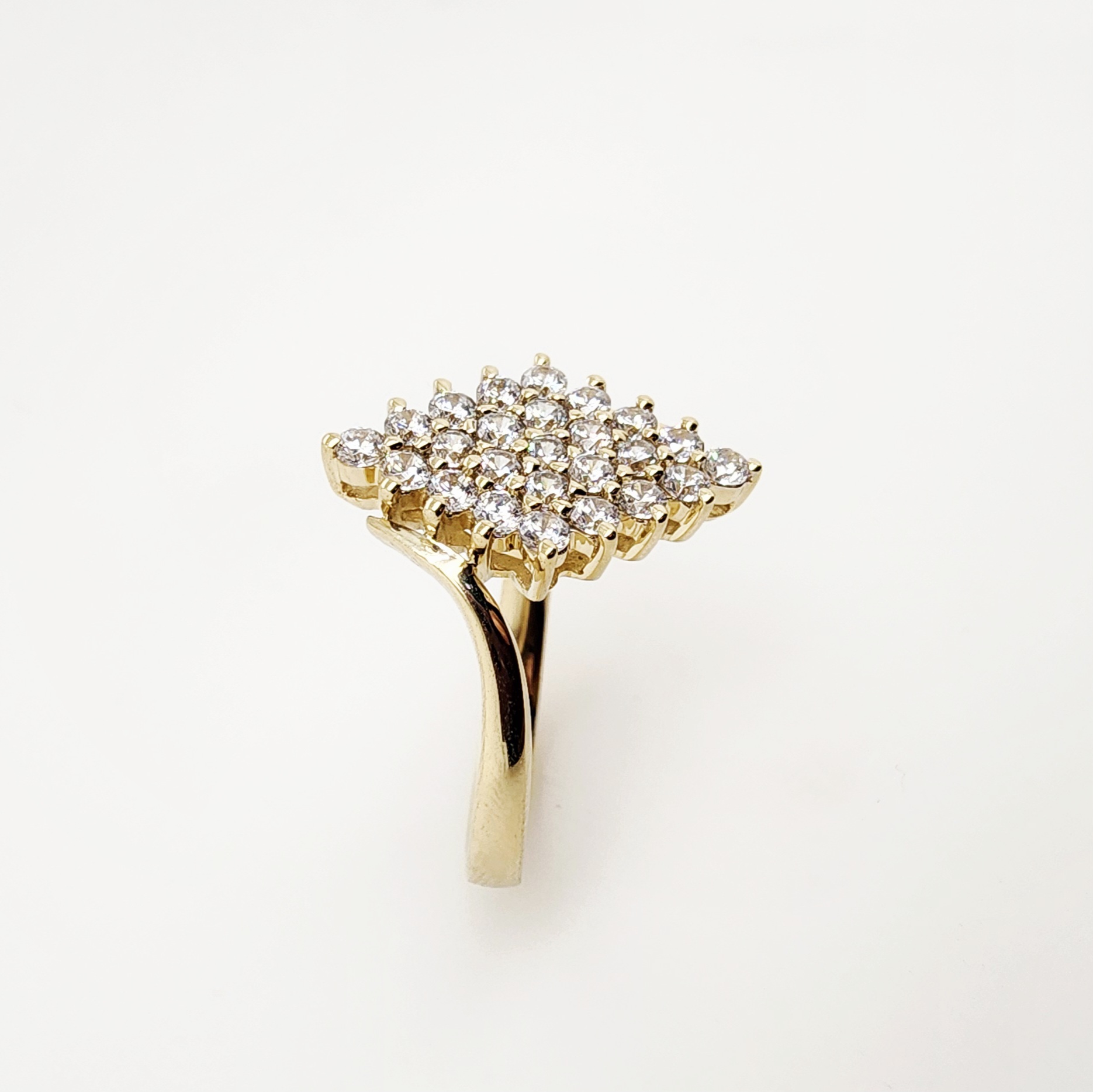 Polished to a bright finish, this cluster ring is bold yet graceful—perfect as a statement piece for special occasions or as a glamorous addition to your everyday jewellery collection.