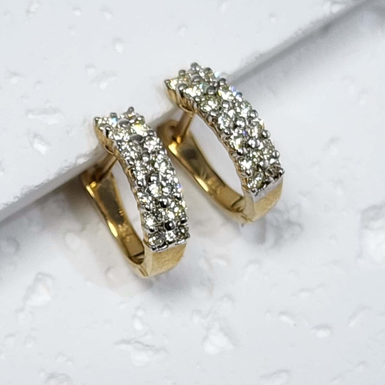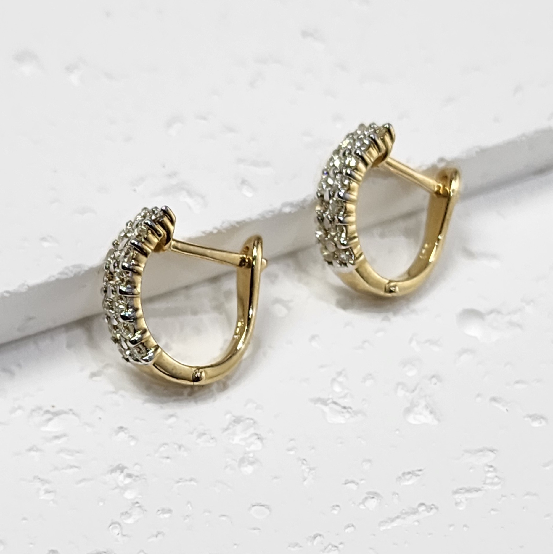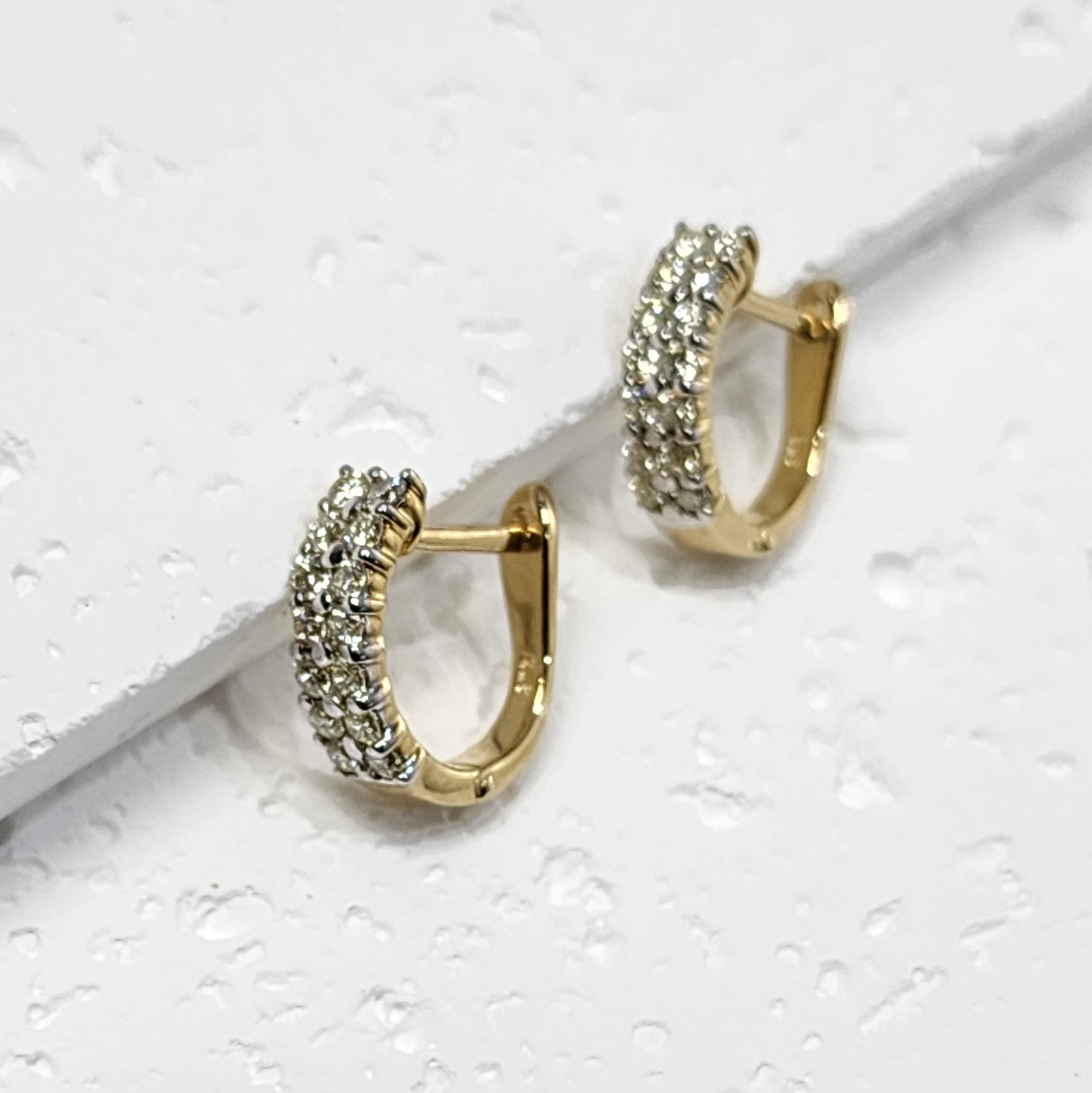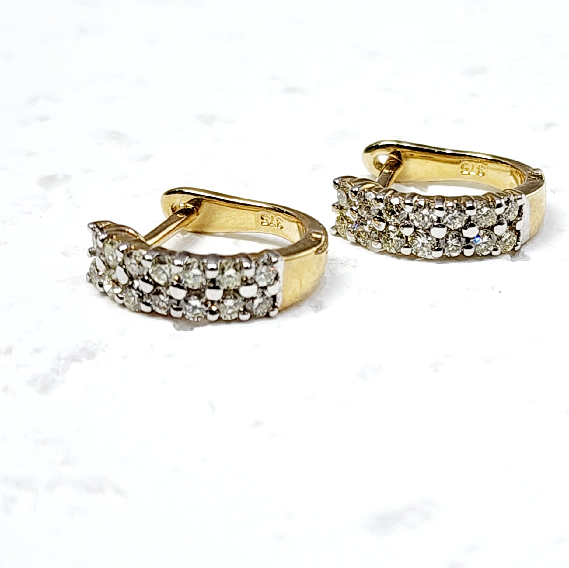 9ct Yellow Gold Double Row 0.53ct Diamond Huggie Earrings