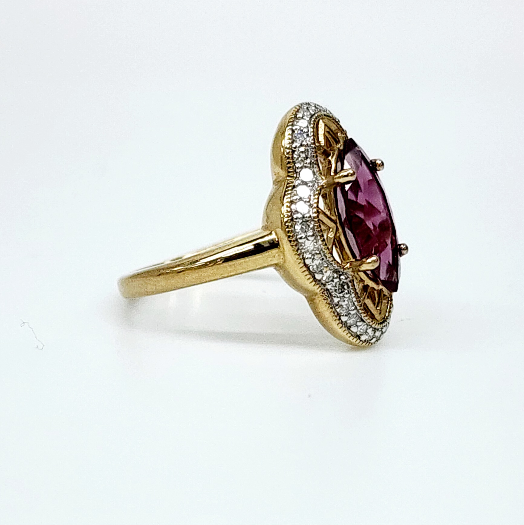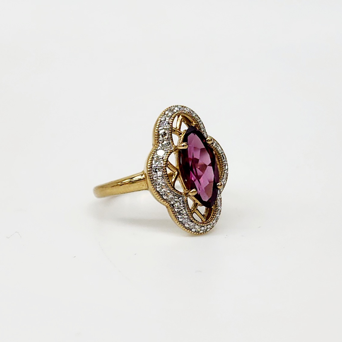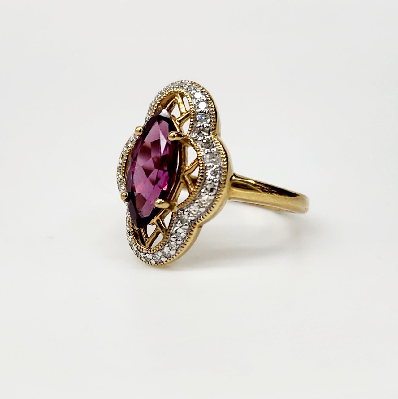 9ct Yellow Gold Dress Ring with 2.0ct Marquise Cut Purple Garnet & 0.21ct Diamonds