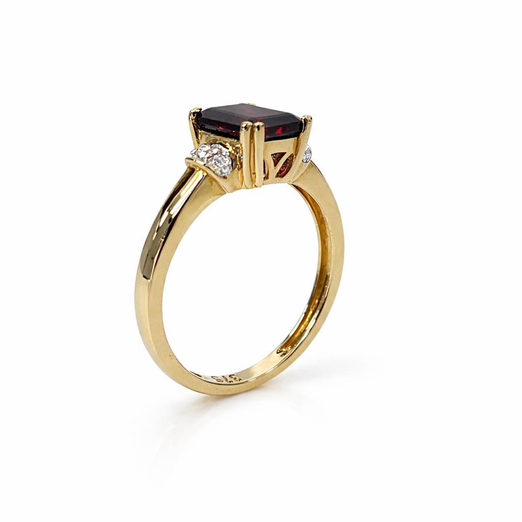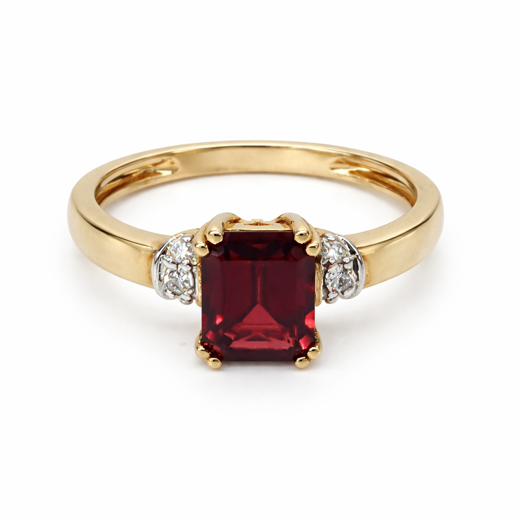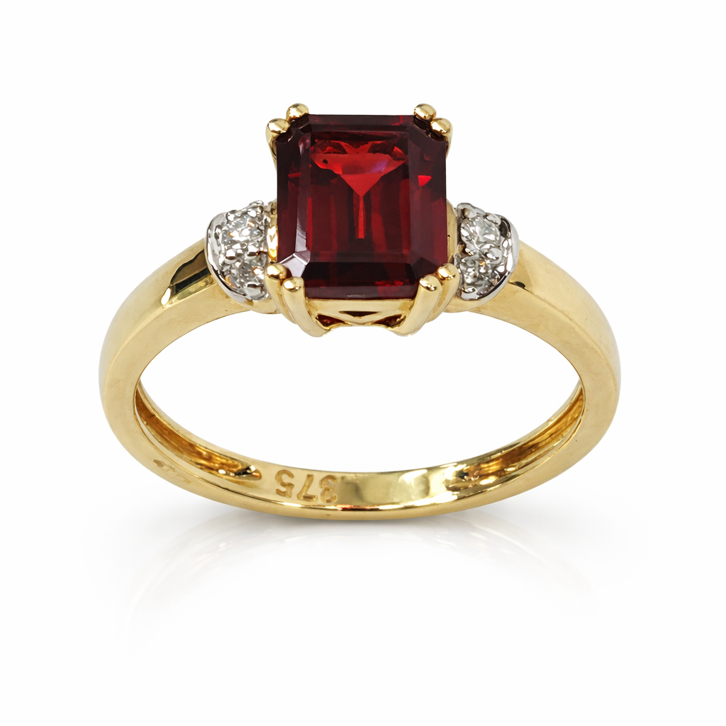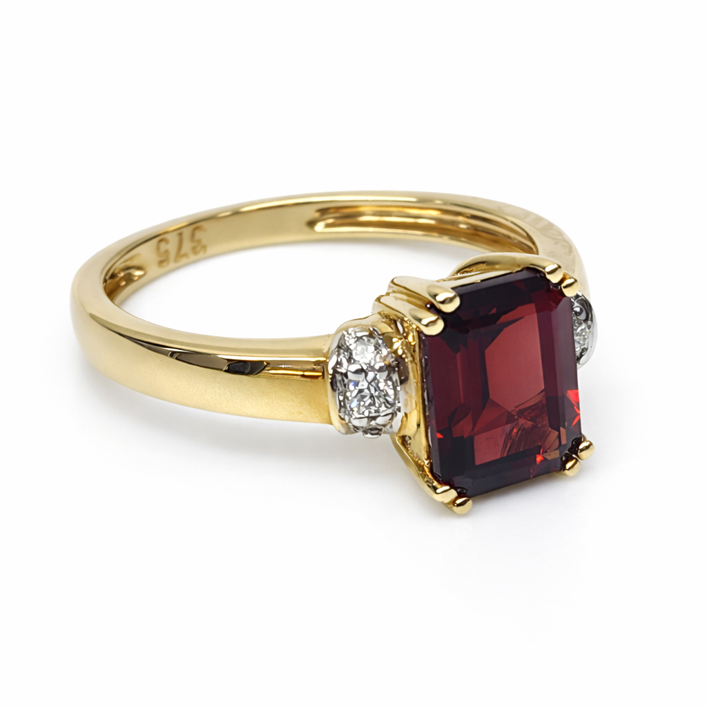 9ct Yellow Gold Emerald Cut Garnet & Diamond Ring – 9CTDA35