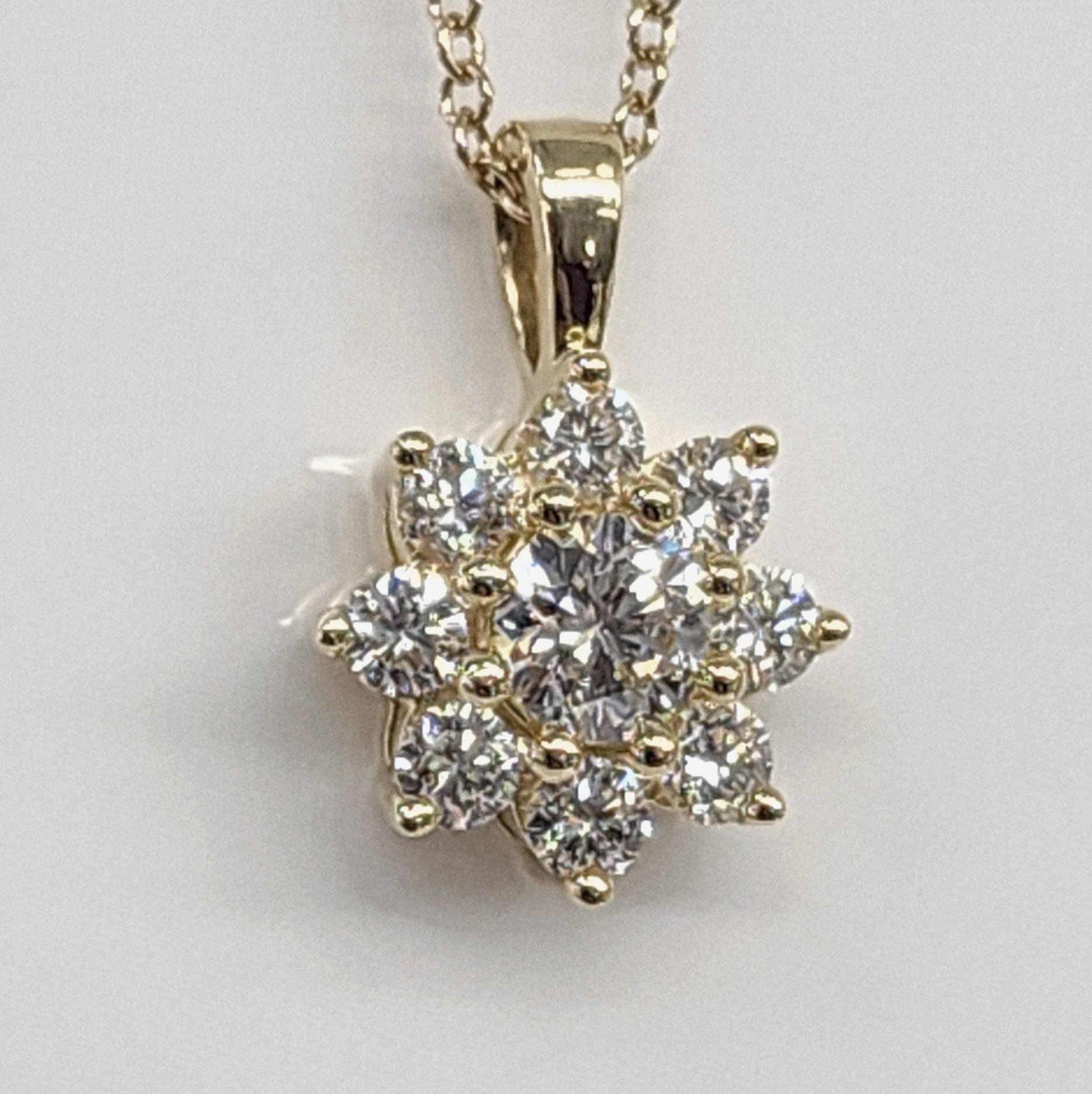 9ct Yellow Gold Flower Round LGD 0.54ct E/F – VS Diamond Pendant with 9ct YG Necklace 45cm – AUPD1784