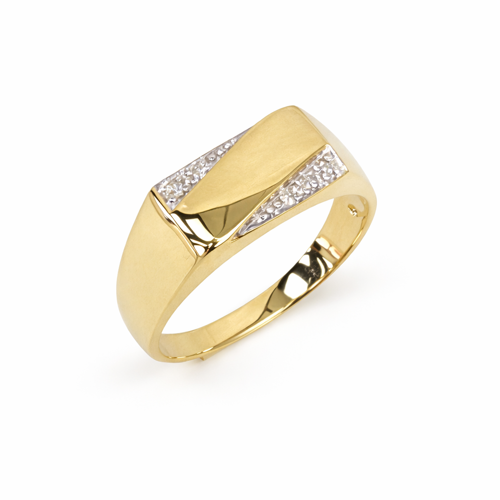 Make a strong, refined statement with this modern 9ct yellow gold gents signet ring, finished in a high-polish shine and highlighted with natural diamond sparkle. Designed with a bold rectangular top, this piece features a sleek angled panel detail that gives the ring a contemporary, masculine edge.