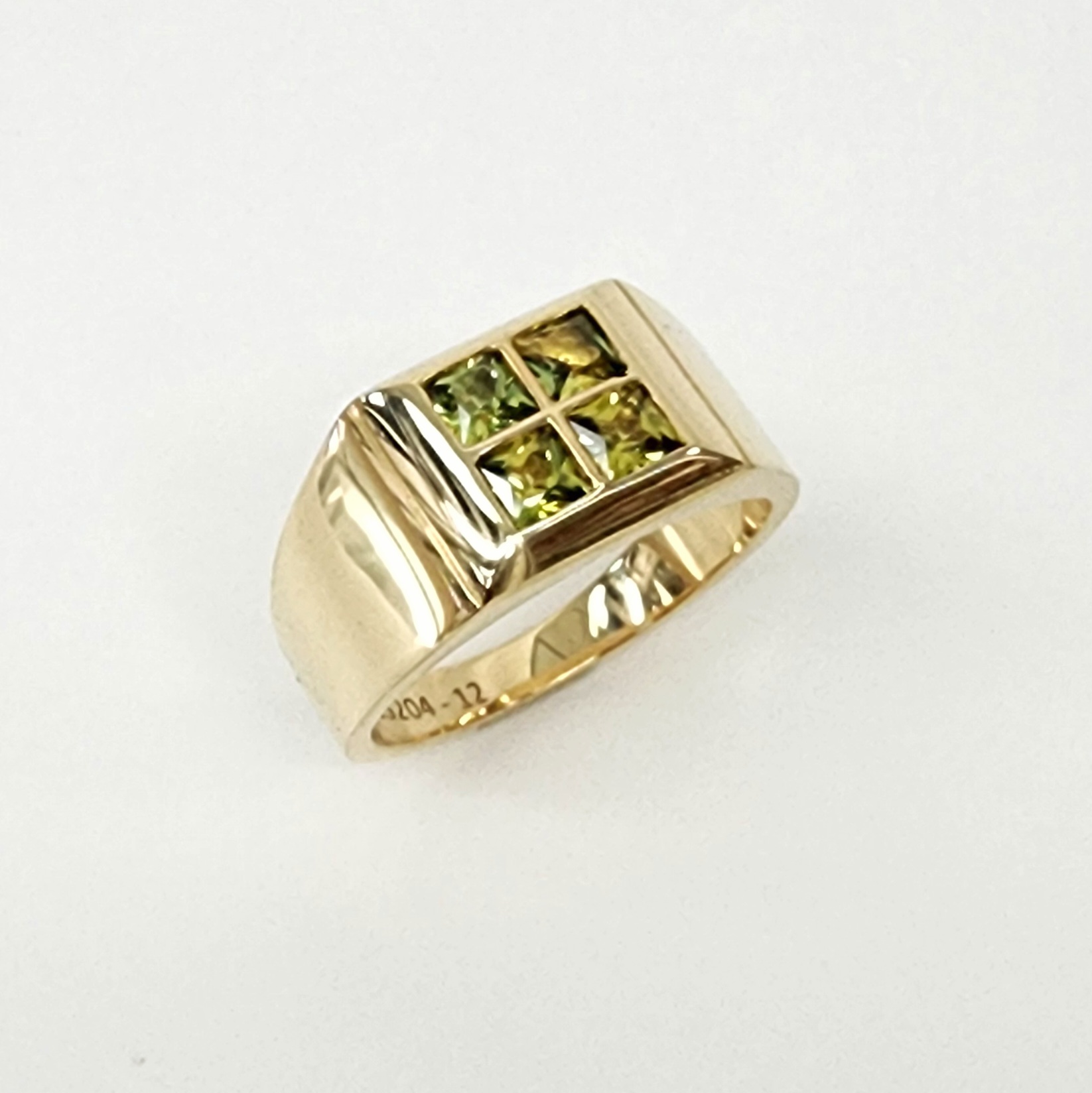 A true masterpiece of fine jewellery, this distinguished men’s signet ring is meticulously crafted in rich 9ct yellow gold, embodying timeless elegance and refined masculinity. The ring showcases four exceptional, natural Australian yellow sapphires, each 4mm x 4mm princess cut, precision-set in a sleek rubover setting that frames and protects the stones while enhancing their radiant golden hue.