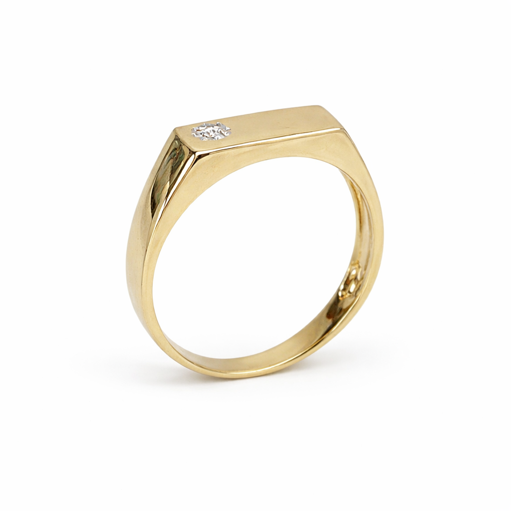 9ct Yellow Gold Gents Signet Ring with 0.015ct Natural Diamond (6.40mm x 14.40mm Top) – 9YGD9470