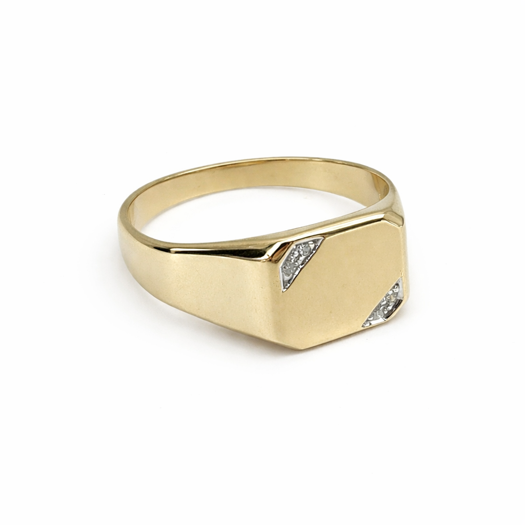 9ct Yellow Gold Gents Signet Ring with 0.02ct Natural Diamond 4 Claw Set, 10.90 x 11.50mm Top – 9YGD2154