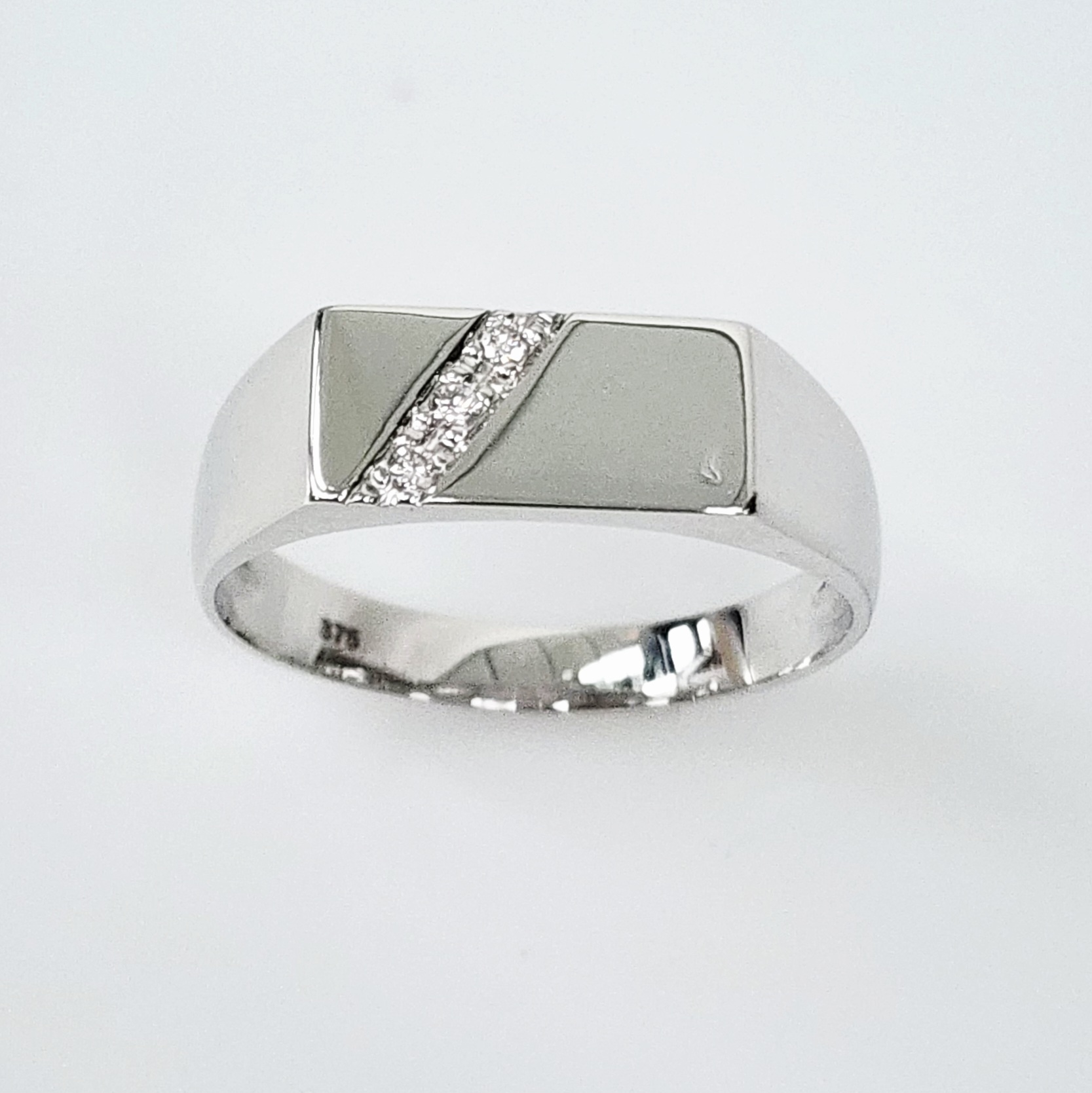 9ct White Gold Gents Signet Ring with Diamond Setting – D6413/9W