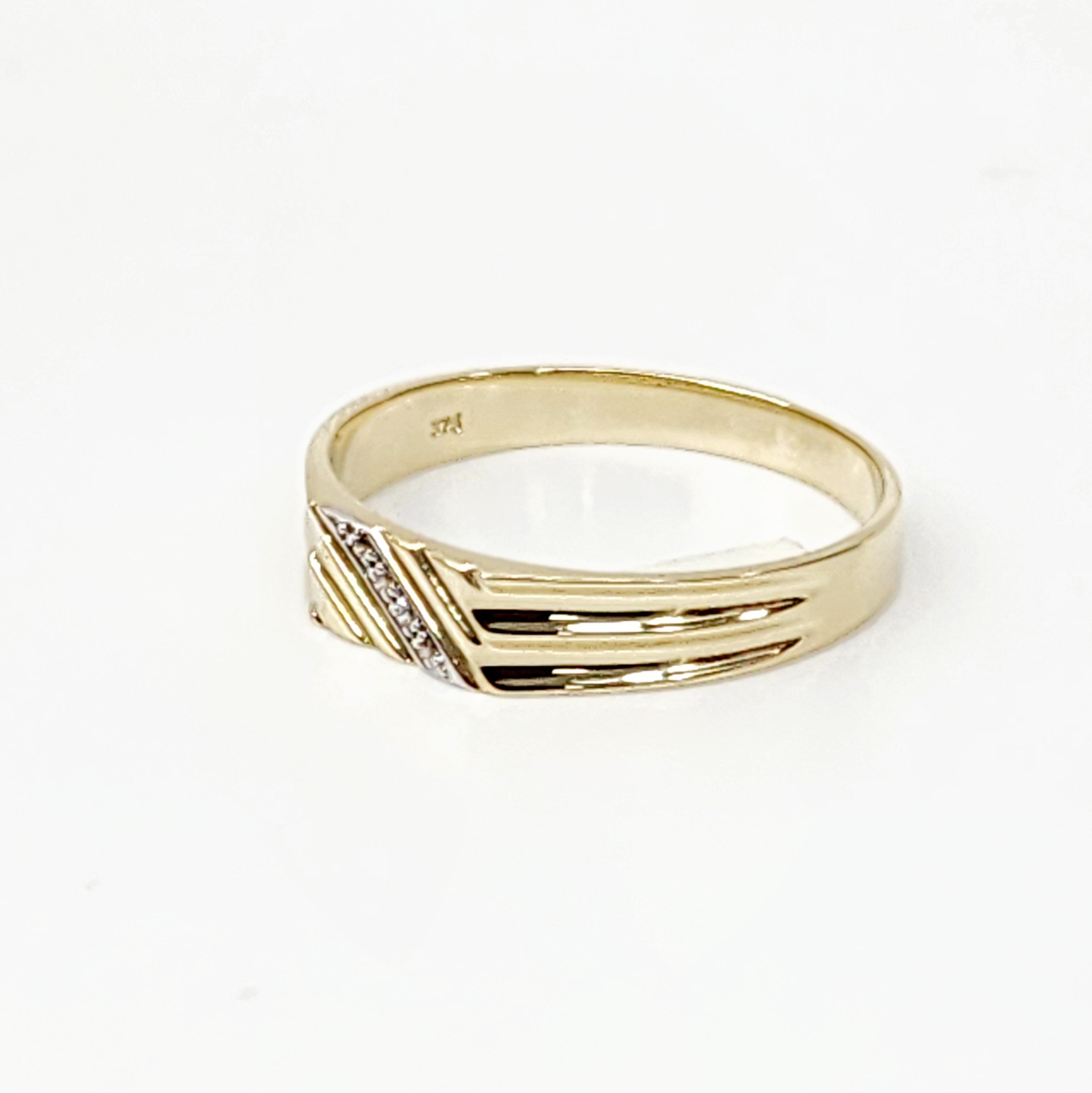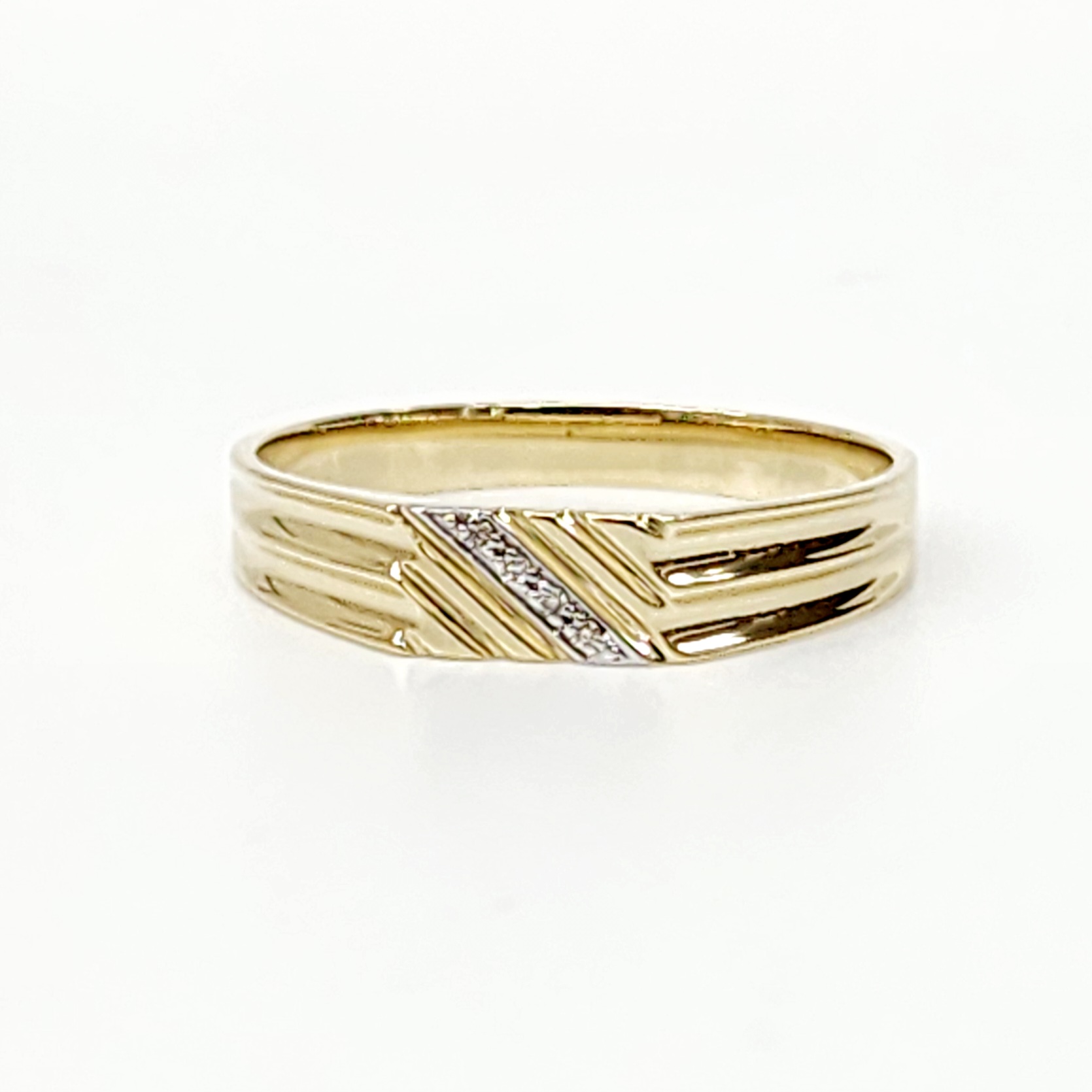 9ct Yellow Gold Gents Wedding / Dress Ring with 0.02ct Diamond
