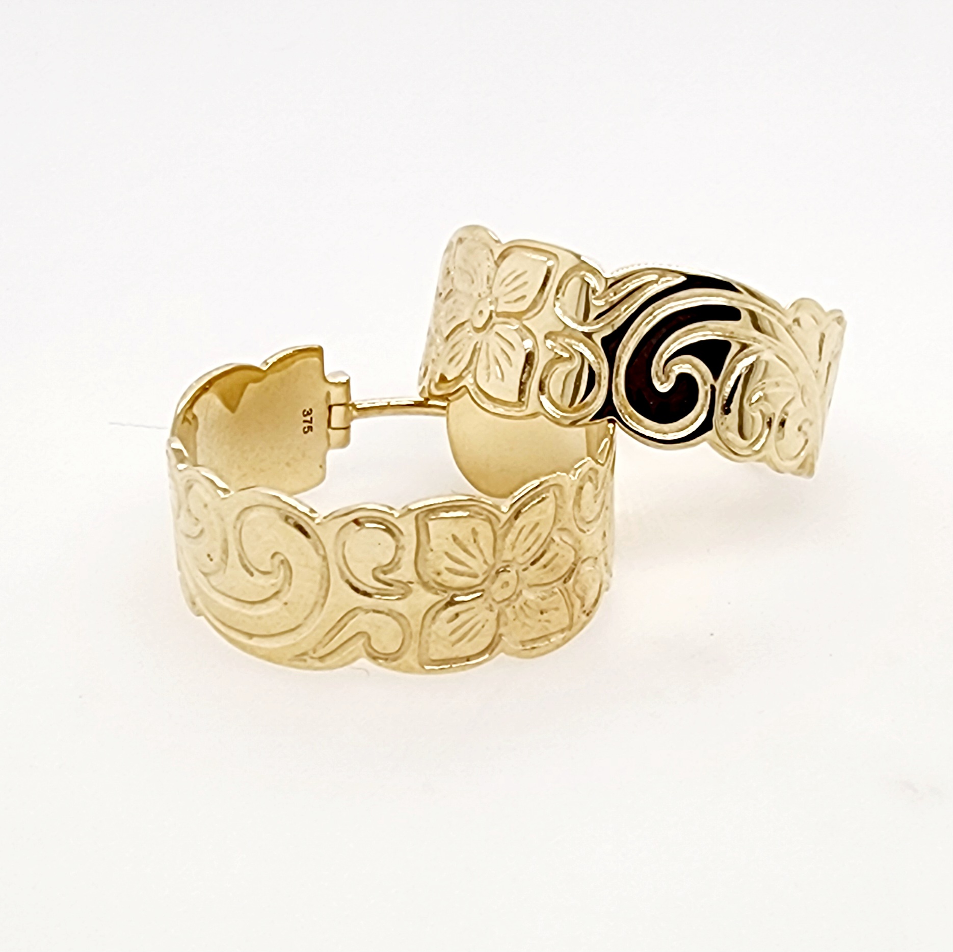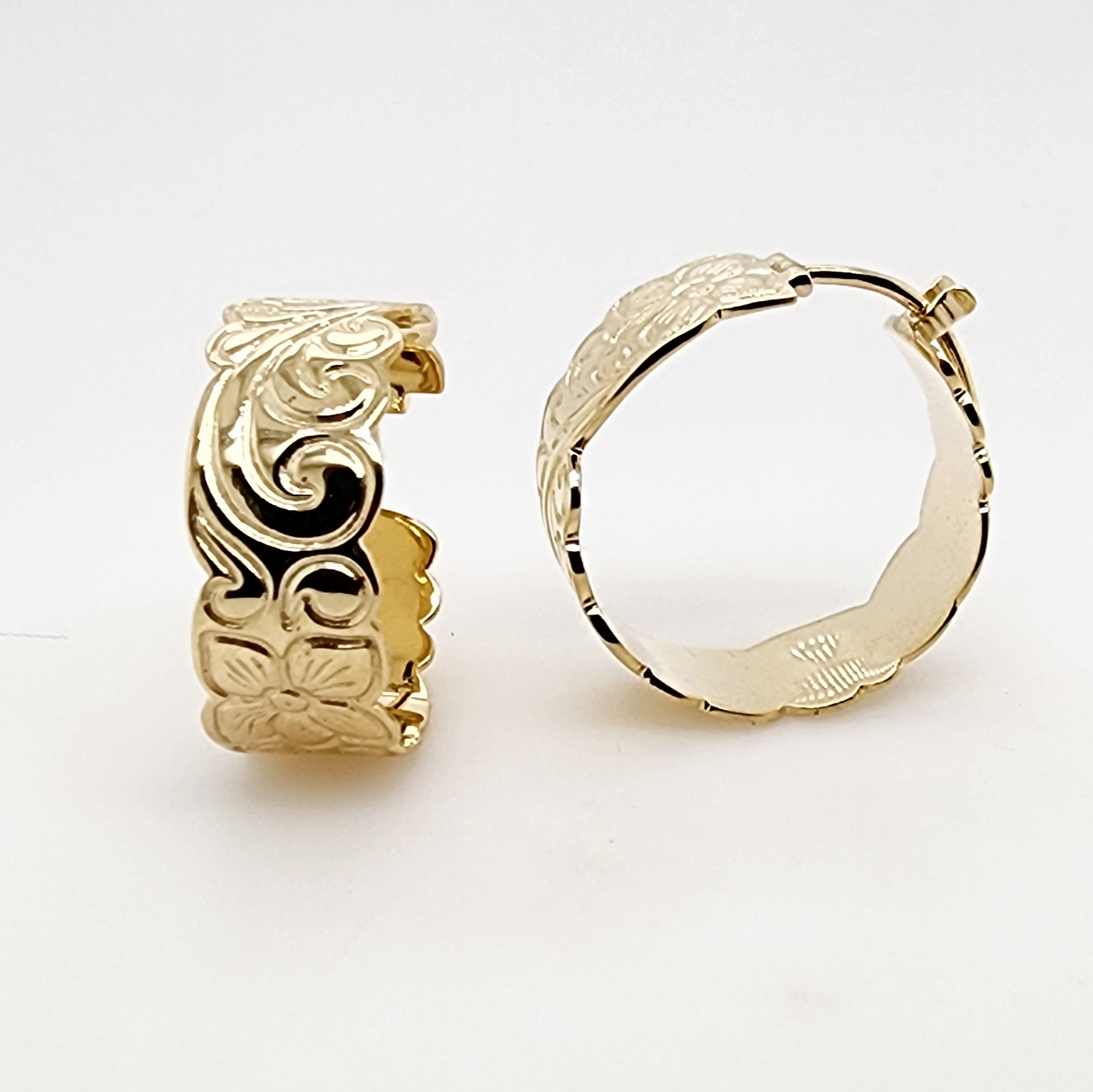 Add a touch of island elegance to your look with these beautifully crafted 9ct yellow gold hoop earrings, featuring a classic Hawaiian-inspired engraved design.