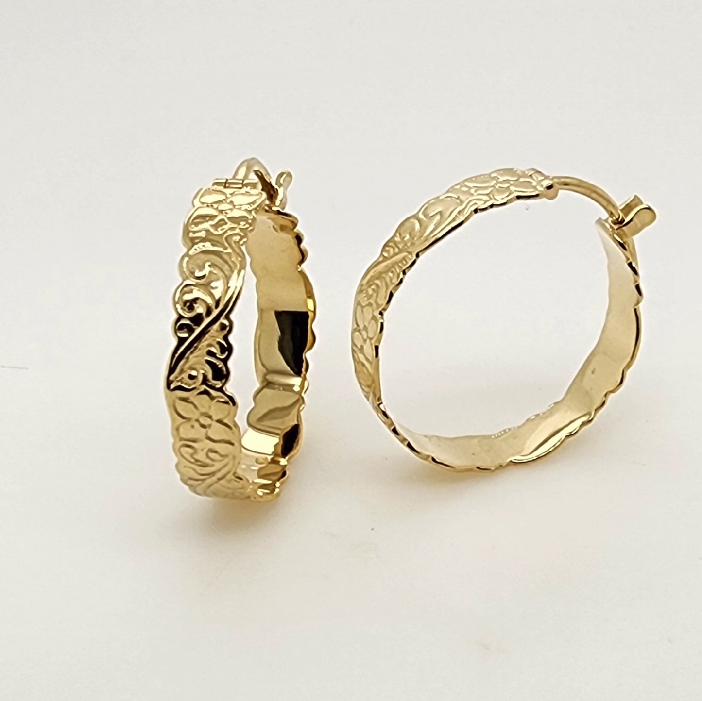 Add a touch of island elegance to your look with these beautifully crafted 9ct yellow gold hoop earrings, featuring a classic Hawaiian-inspired engraved design.