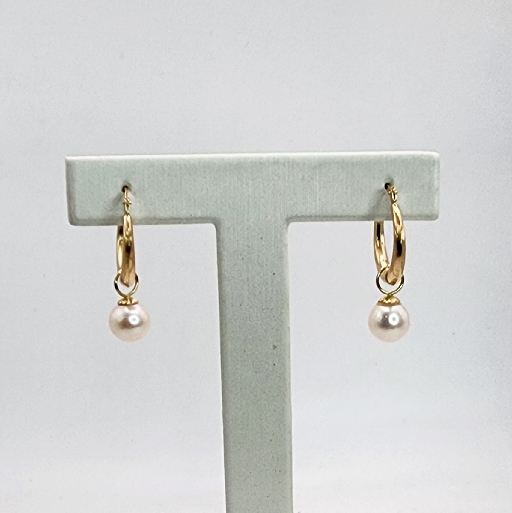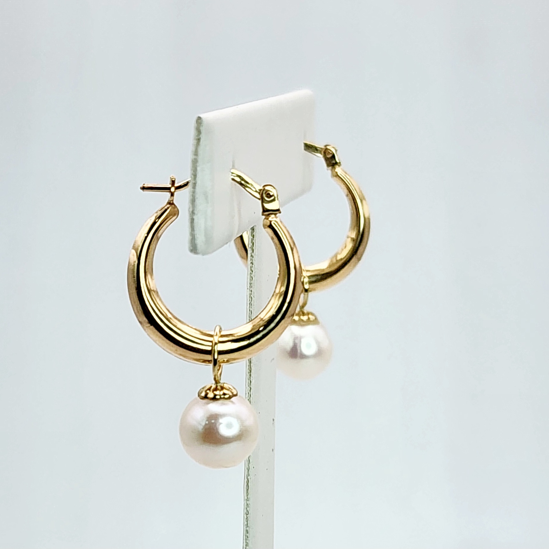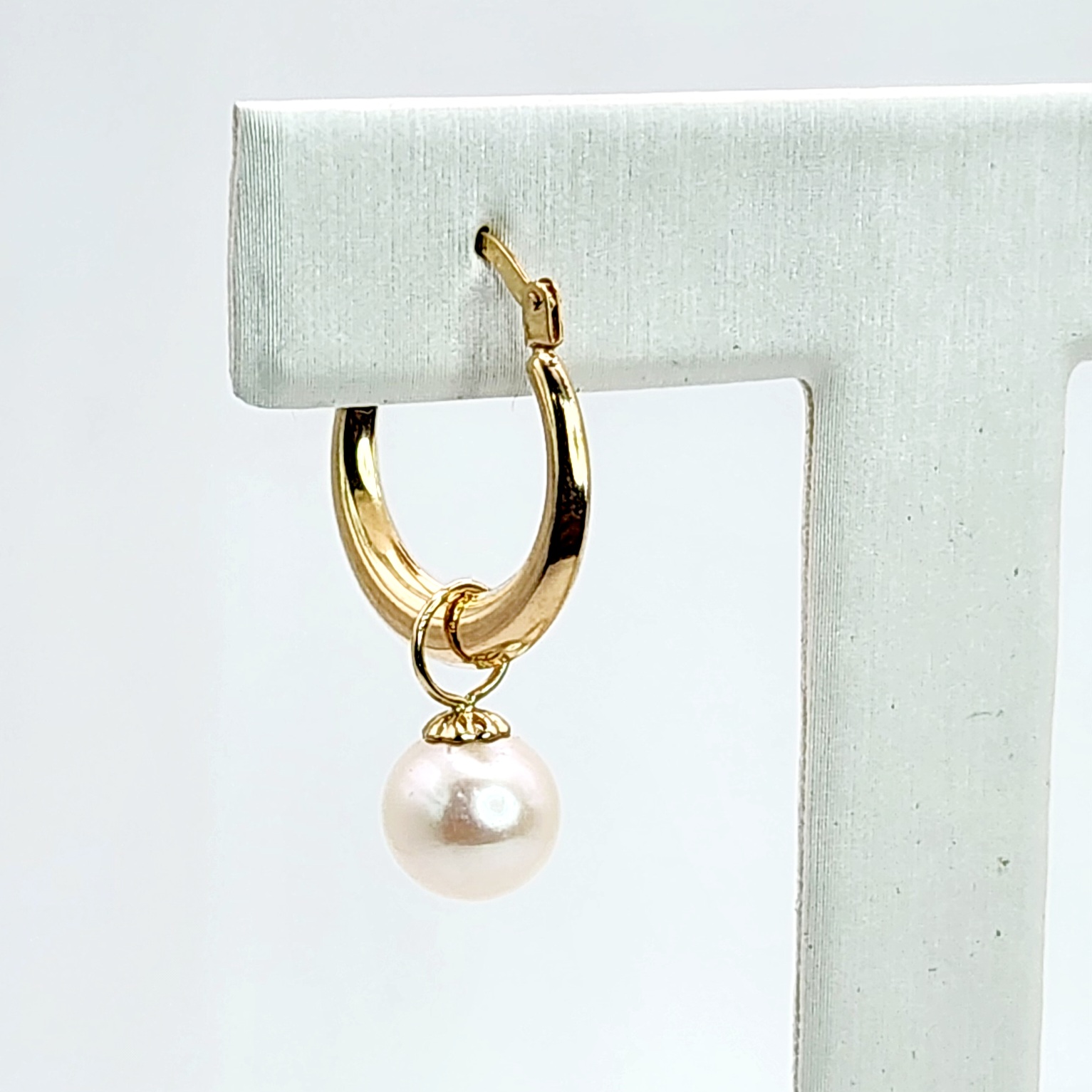 9ct Yellow Gold Hoop Earrings with 8mm Round Cultured Freshwater Pearls