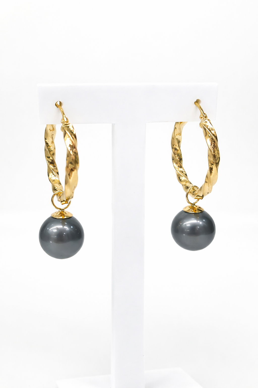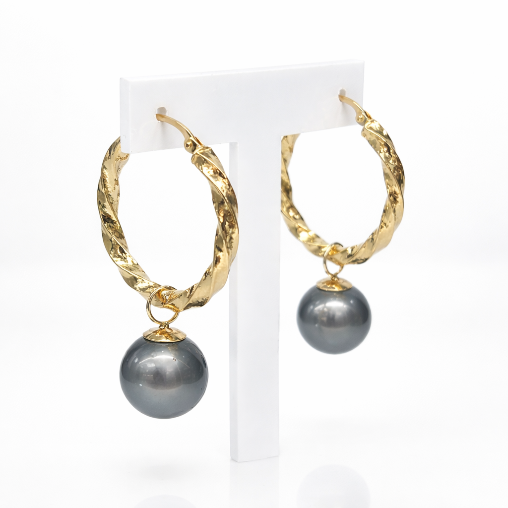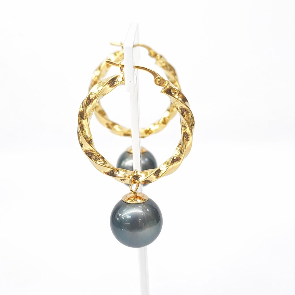 9ct Yellow Gold Hoop Style Tahitian Black Pearl Earrings – 9CTPZZ