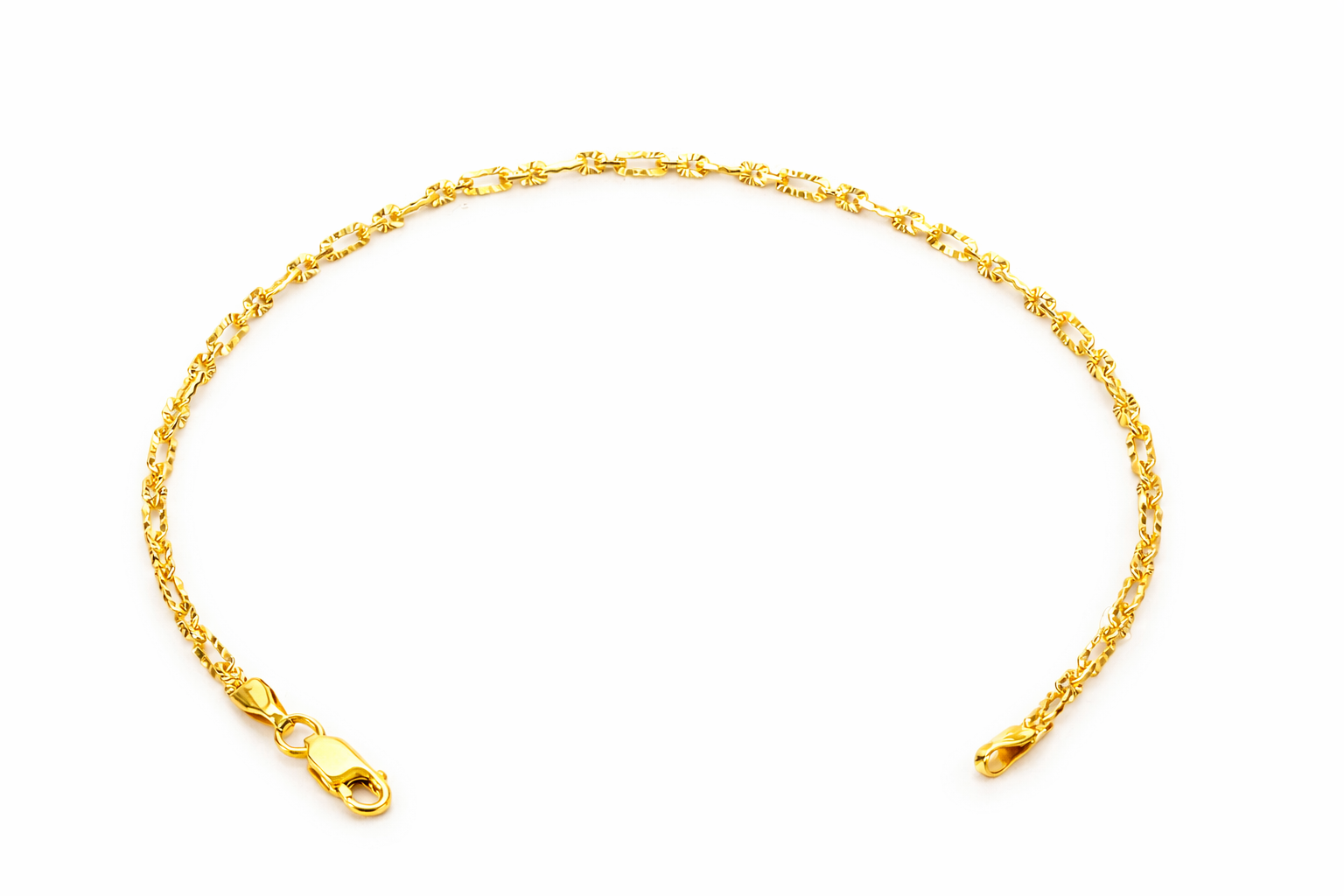 9ct Yellow Gold Italian Super Star Figaro Link Bracelet 19cm – Diamond Cut Finish – BNRA8-2-19