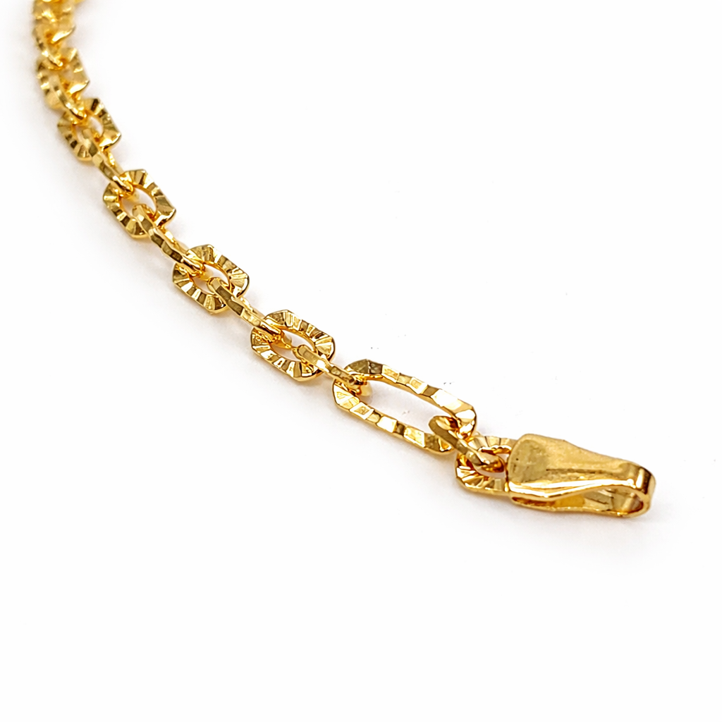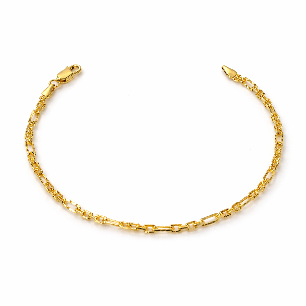 Designed with the iconic Figaro link pattern, this bracelet features a sophisticated sequence of alternating long and short links. Each link is enhanced with a diamond-cut finish, creating a shimmering, light-catching effect that delivers a luxurious sparkle from every angle.