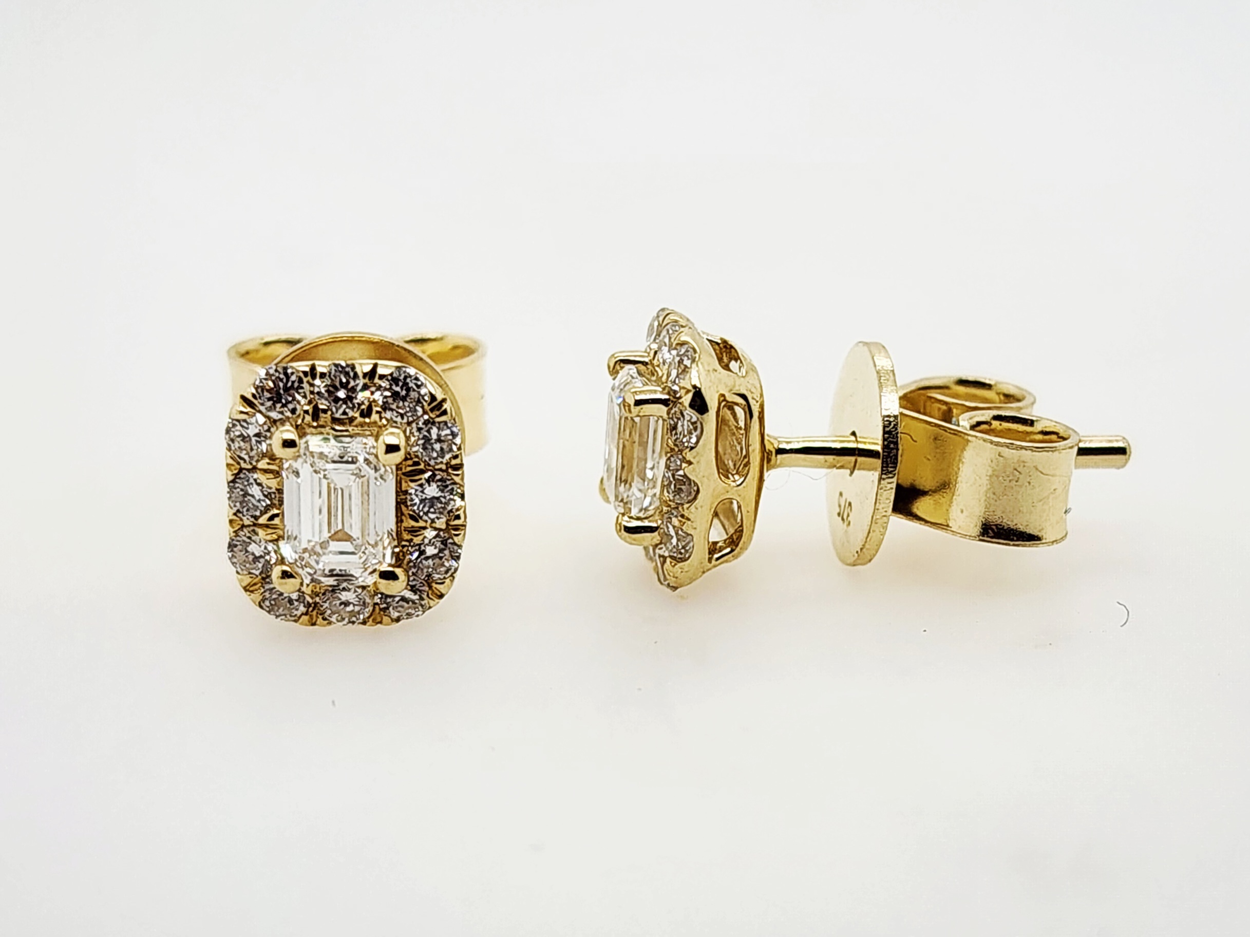 Each stud is designed with a 2.50mm x 3.50mm baguette-cut centre diamond, beautifully framed by 12 round brilliant-cut diamonds, creating a radiant cluster effect. All diamonds are securely set in classic four-claw settings, ensuring durability and lasting shine.