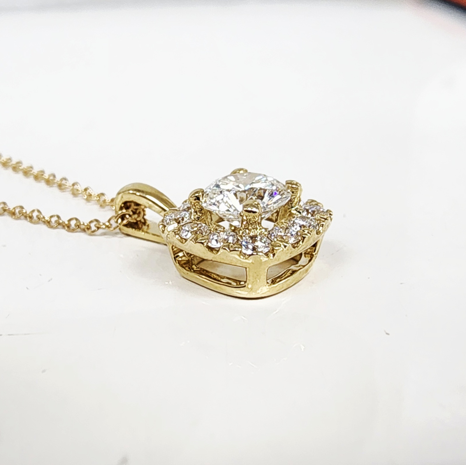 9ct Yellow Gold Lab Grown Diamond Cluster Pendant & Chain 0.83ct TDW EF/VS – AUPD1301