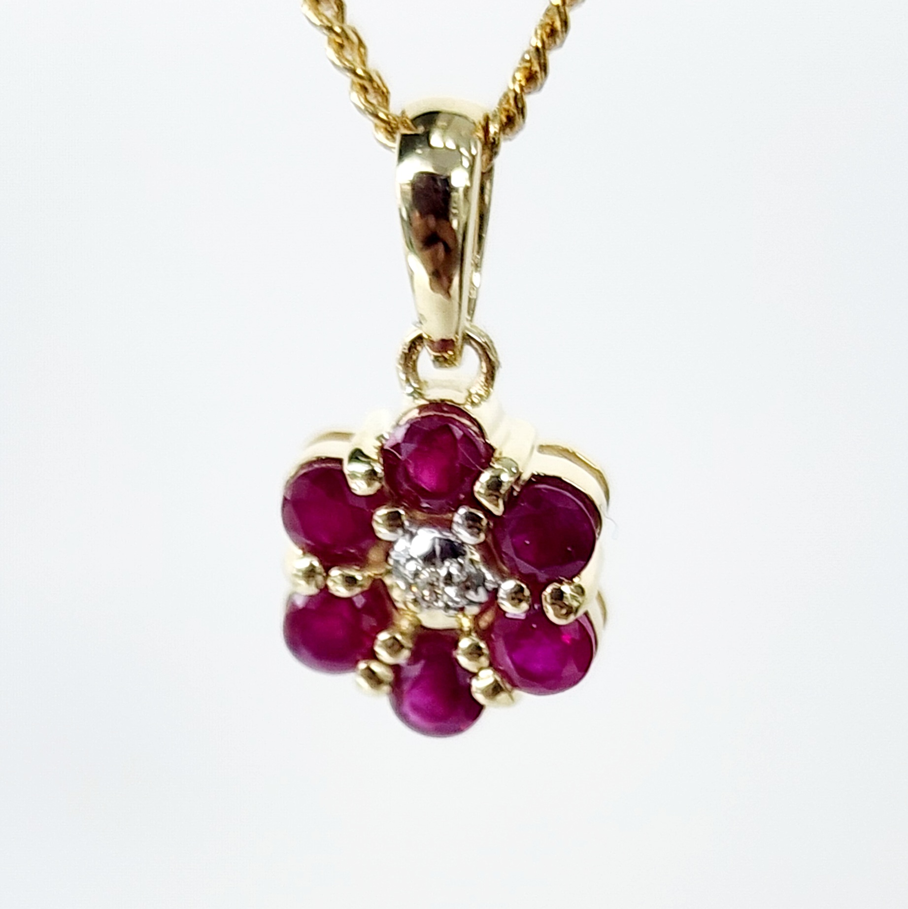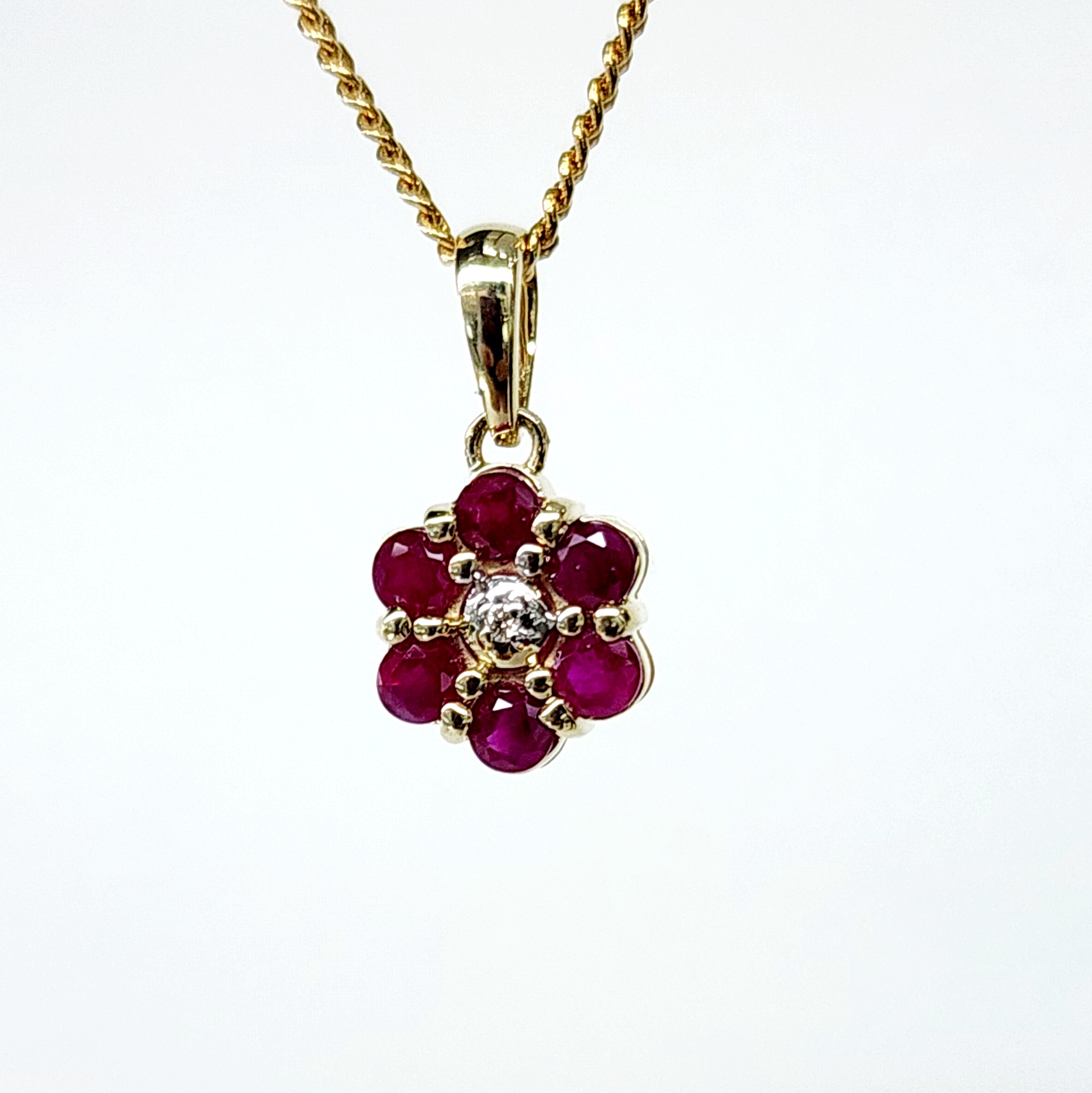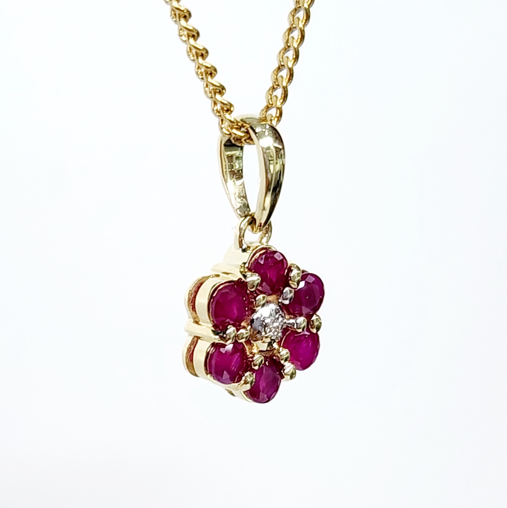 9ct Yellow Gold Natural Ruby and Diamond Cluster Pendant