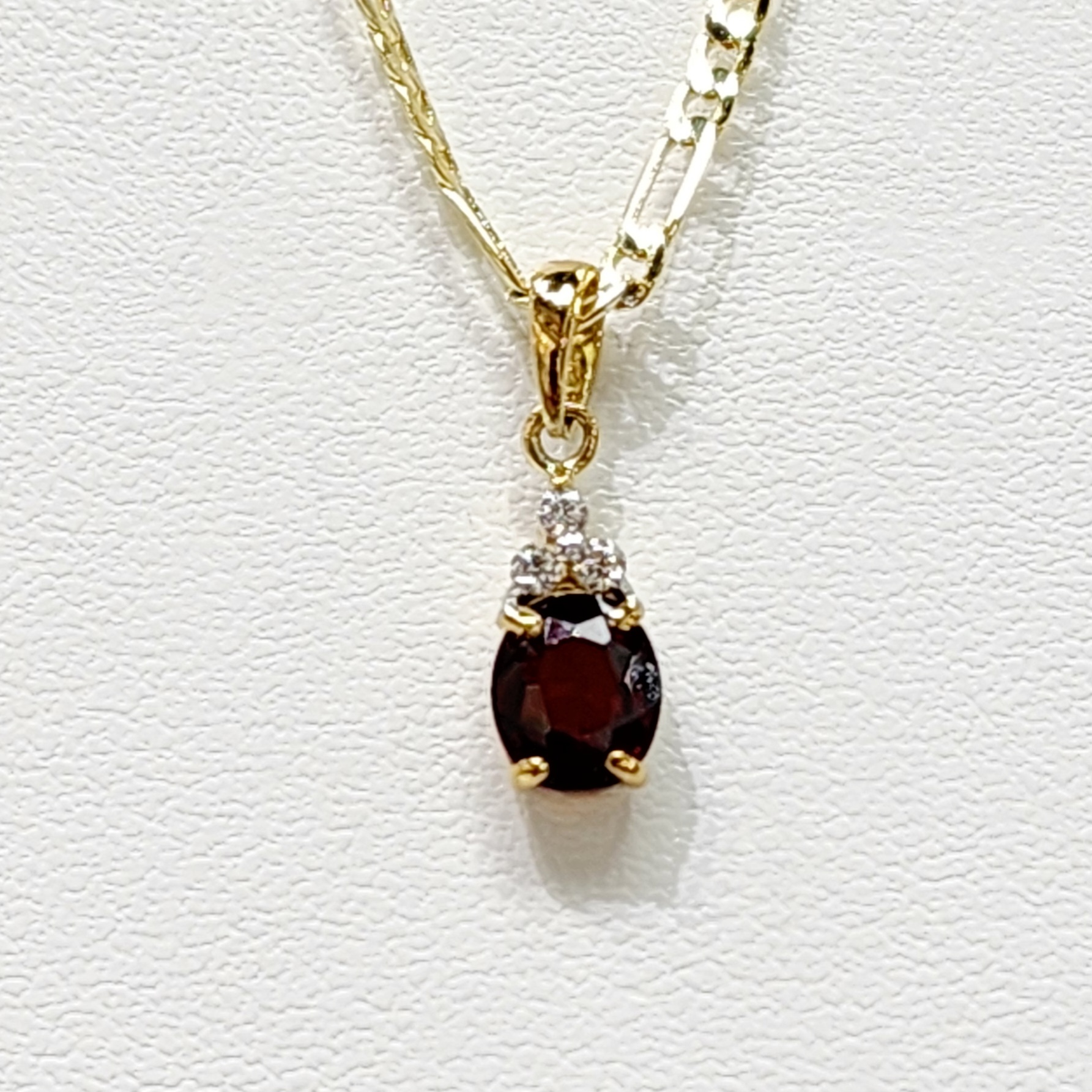 9ct Yellow Gold Oval Garnet with Cubic Zirconia Drop Pendant