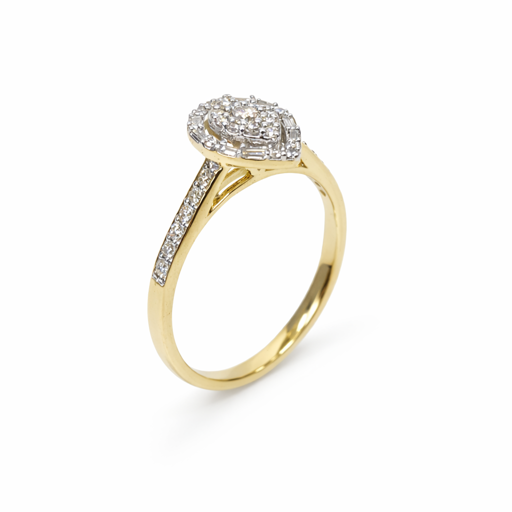 9ct Yellow Gold Pear Shape Diamond Cluster Ring 0.35ct Natural Diamonds- AURG800