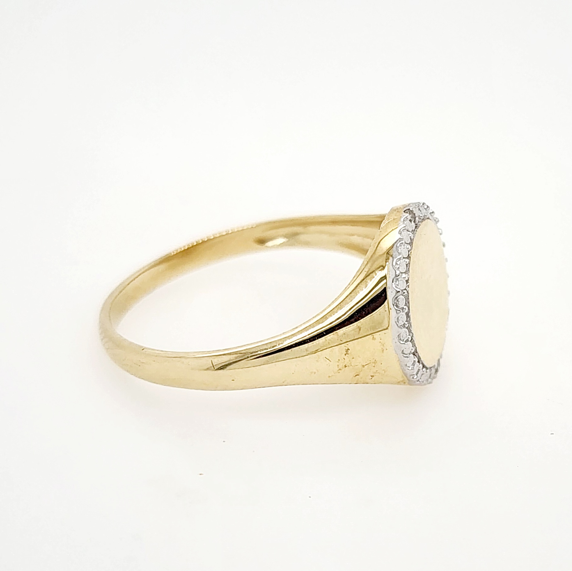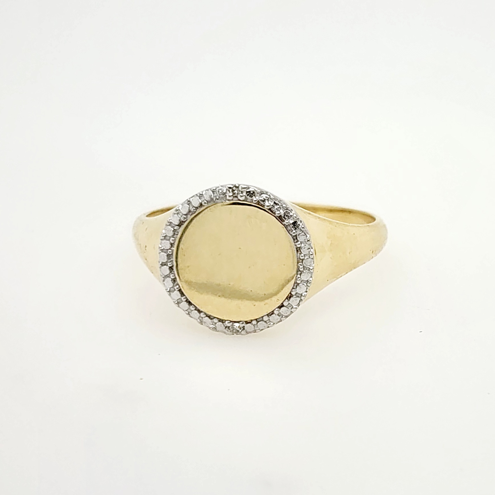 9ct Yellow Gold Signet Ring with Diamond Bezel – Engravable Pinky Ring