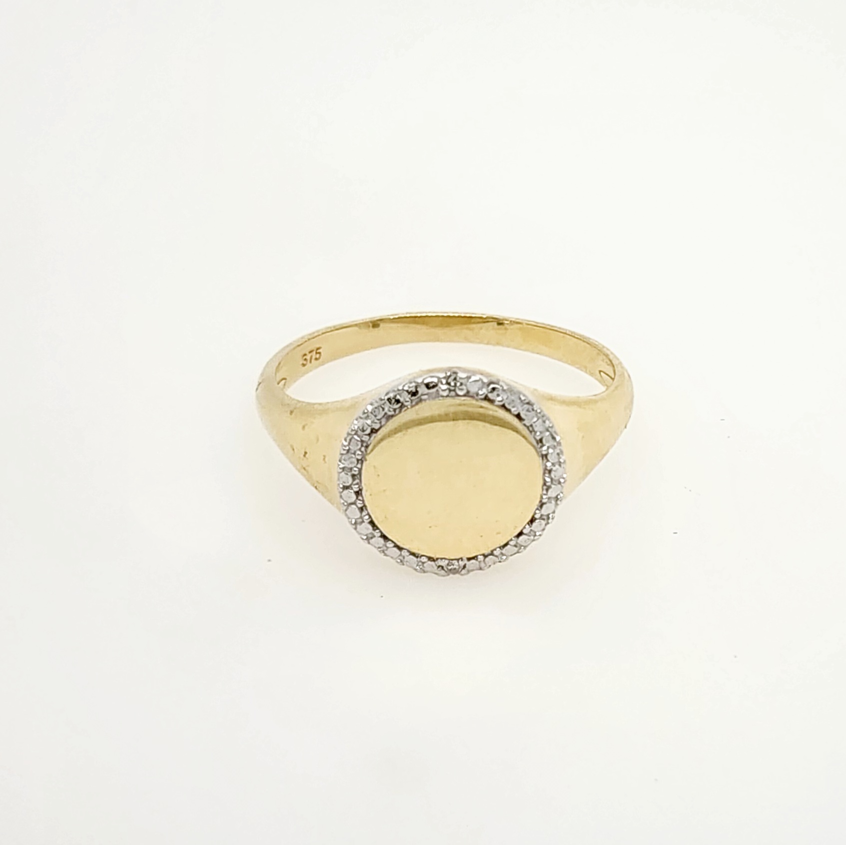 9ct Yellow Gold Pinky Signet Ring with Diamond Halo – D15071-9YG