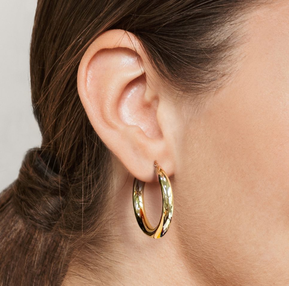 9ct Yellow Gold Plain 4mm x 20mm Polished Hoop Earrings