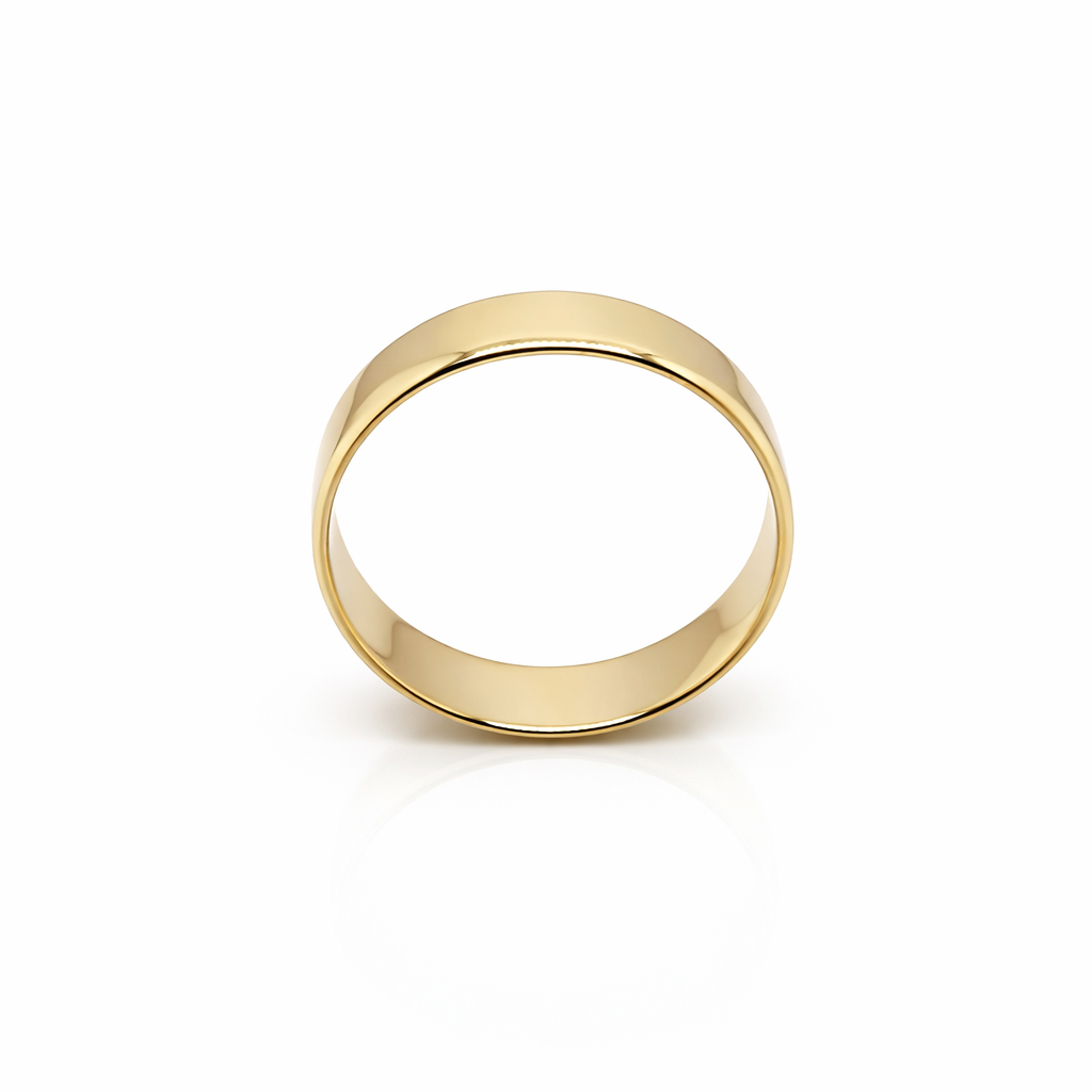 9ct Yellow Gold Plain Flat Profile Wedding Band – 5mm Bevelled Edge