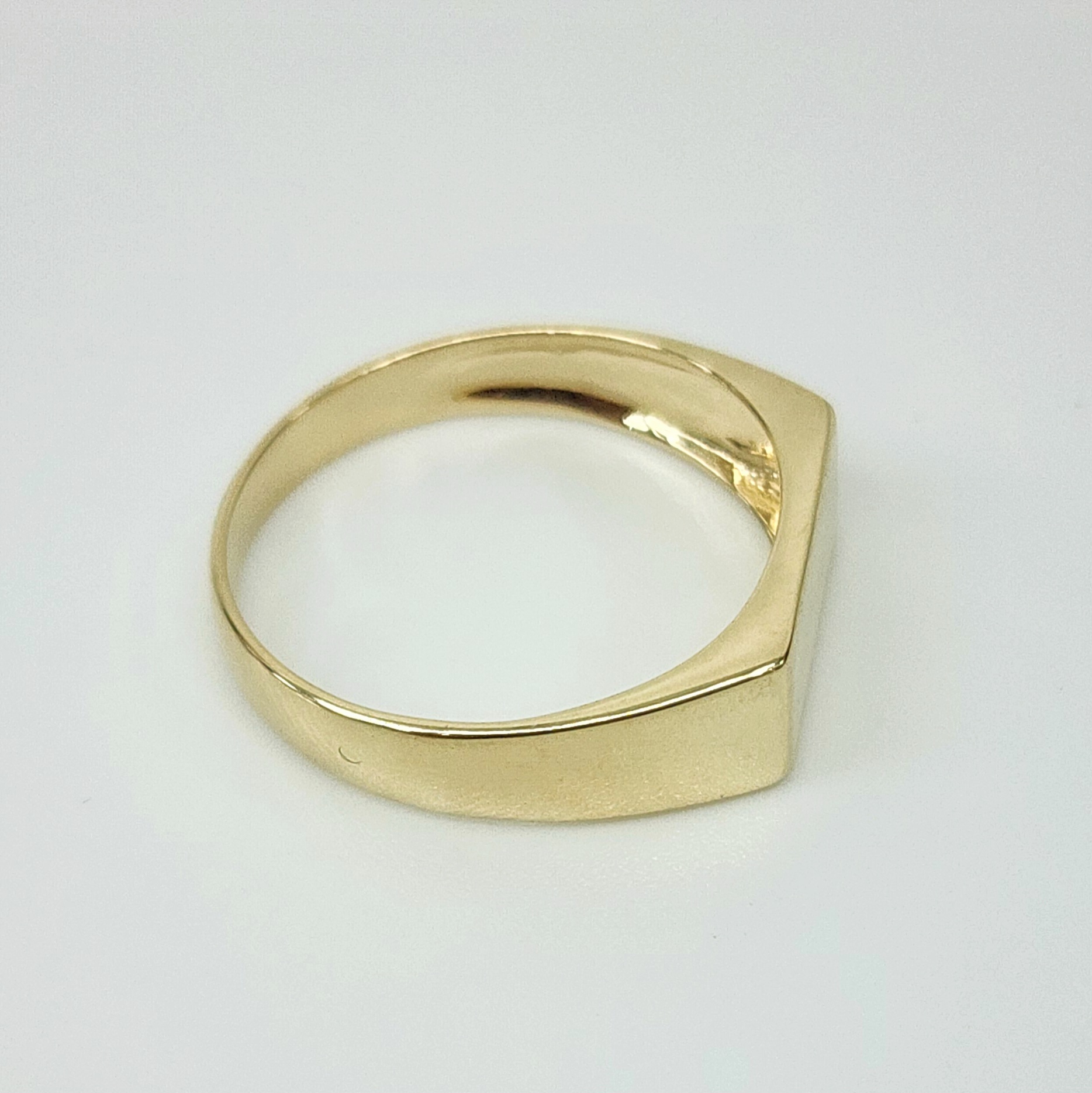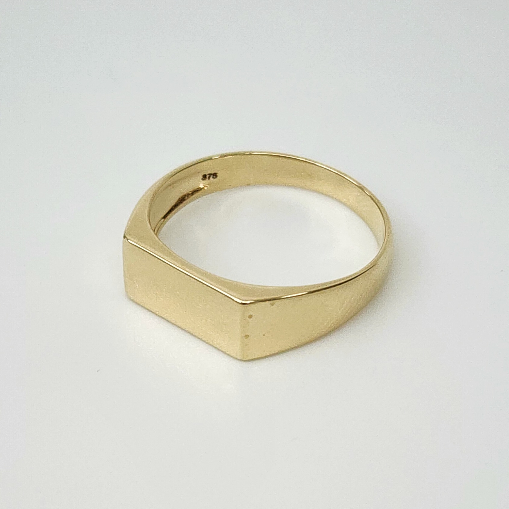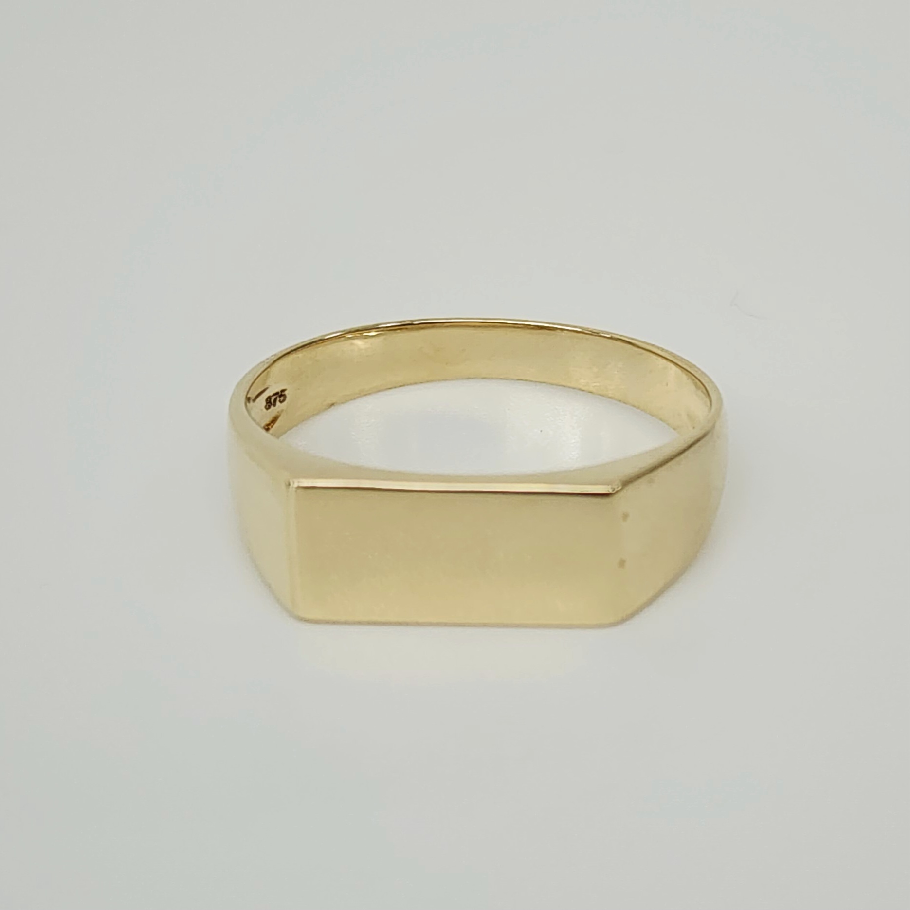 Crafted in solid 9ct yellow gold, this classic men’s signet ring is designed to suit both formal and everyday wear. The ring features a rectangular signet face measuring 6.40mm x 14.00mm, with rounded edges for a smooth, comfortable finish. The band tapers down to 3mm wide at the back, ensuring a sleek and well-balanced fit.