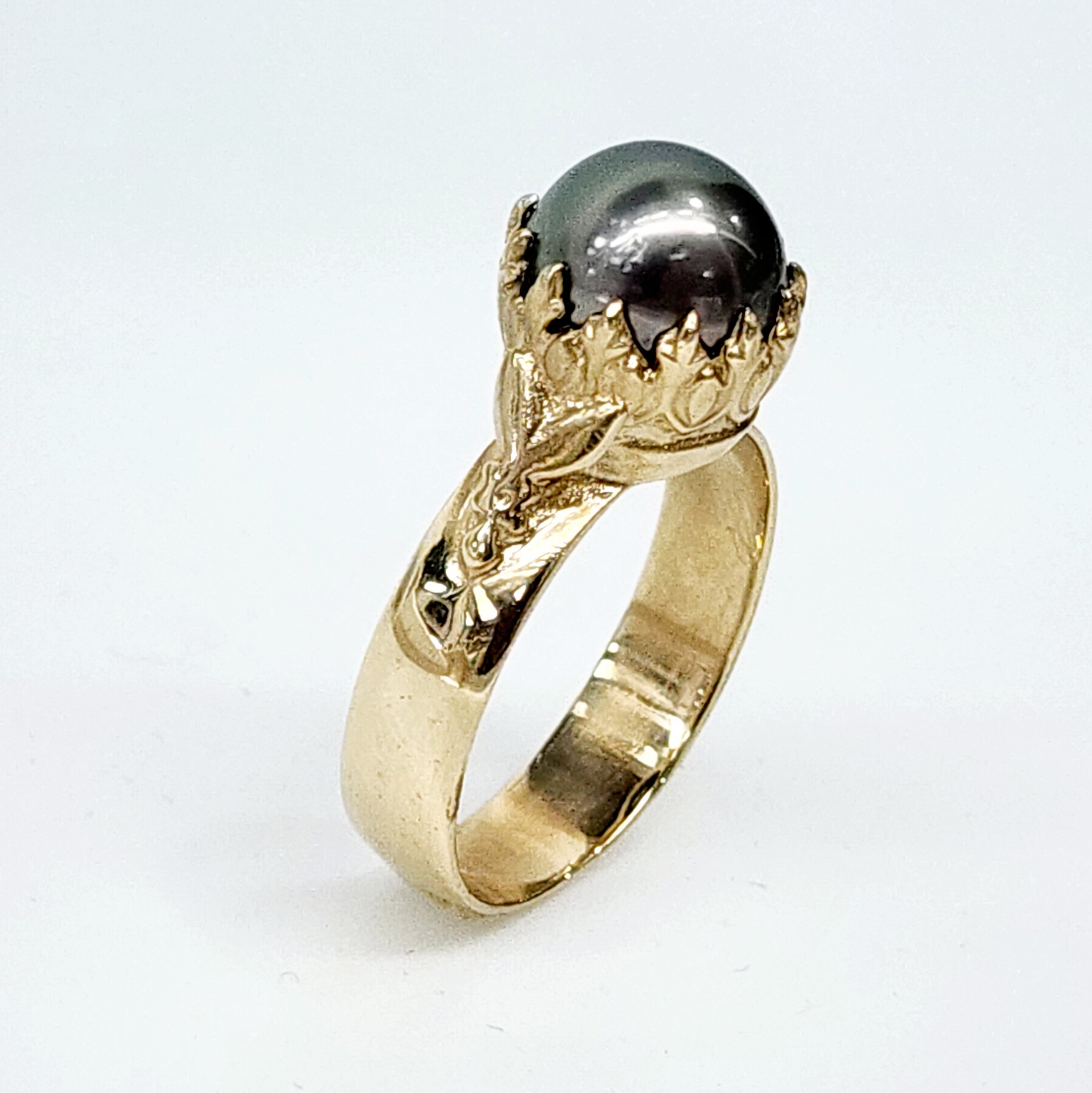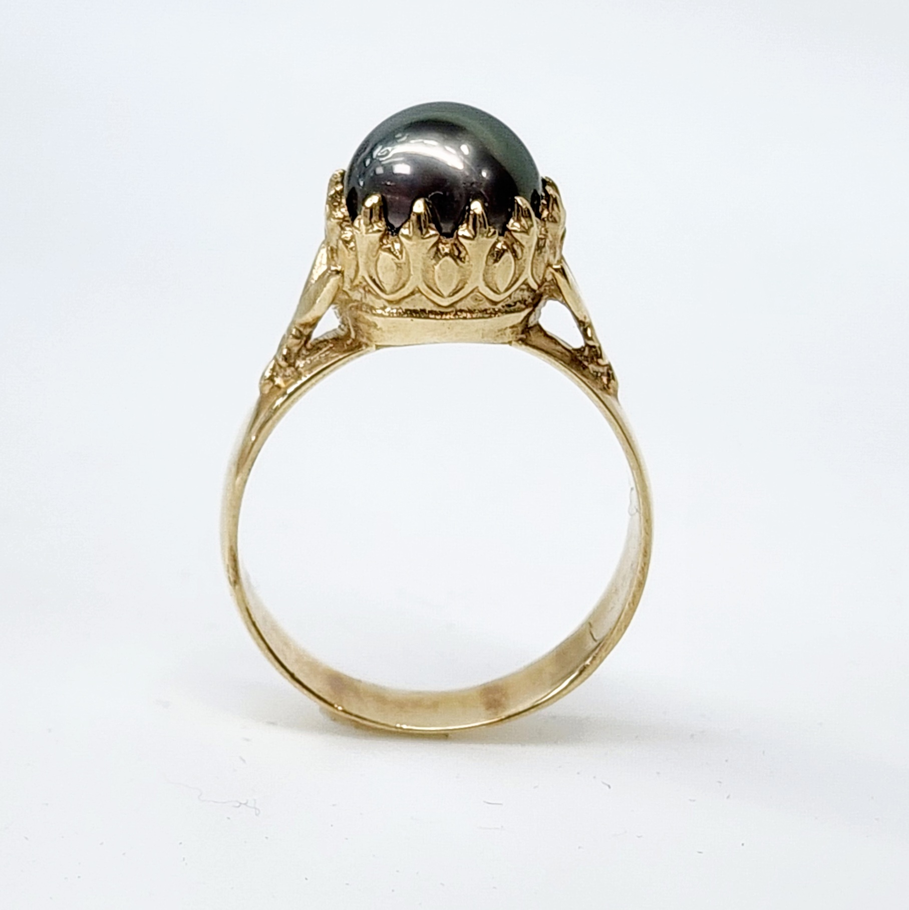 9ct Yellow Gold Tahitian Black Pearl Crown Setting Ring