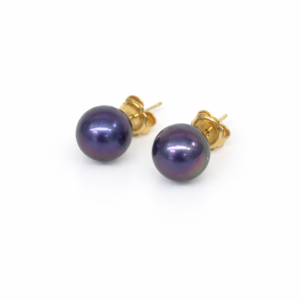 9ct Yellow Gold Tahitian Black Pearl Stud Earrings – 9.50mm – 9CTTZZ