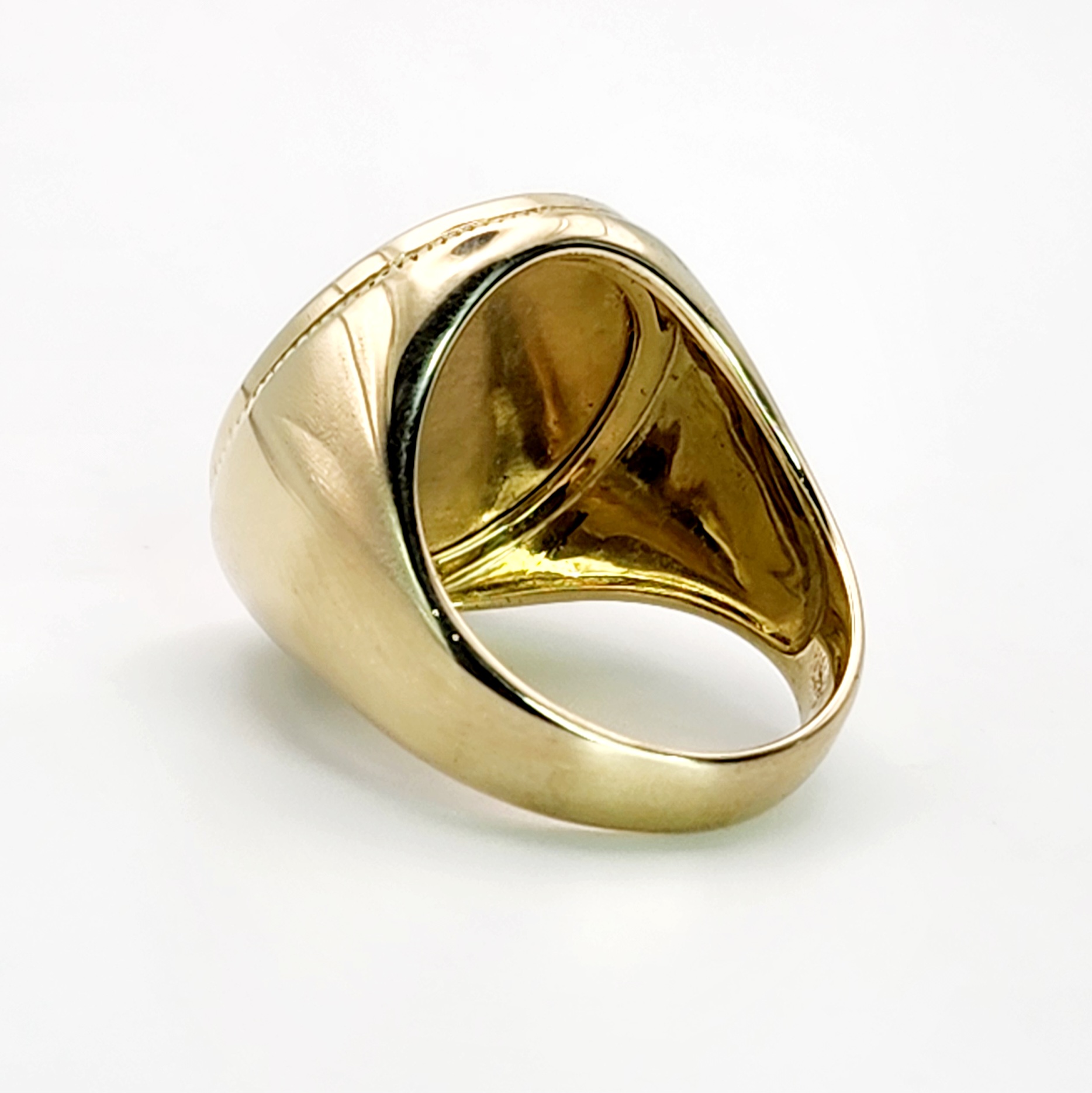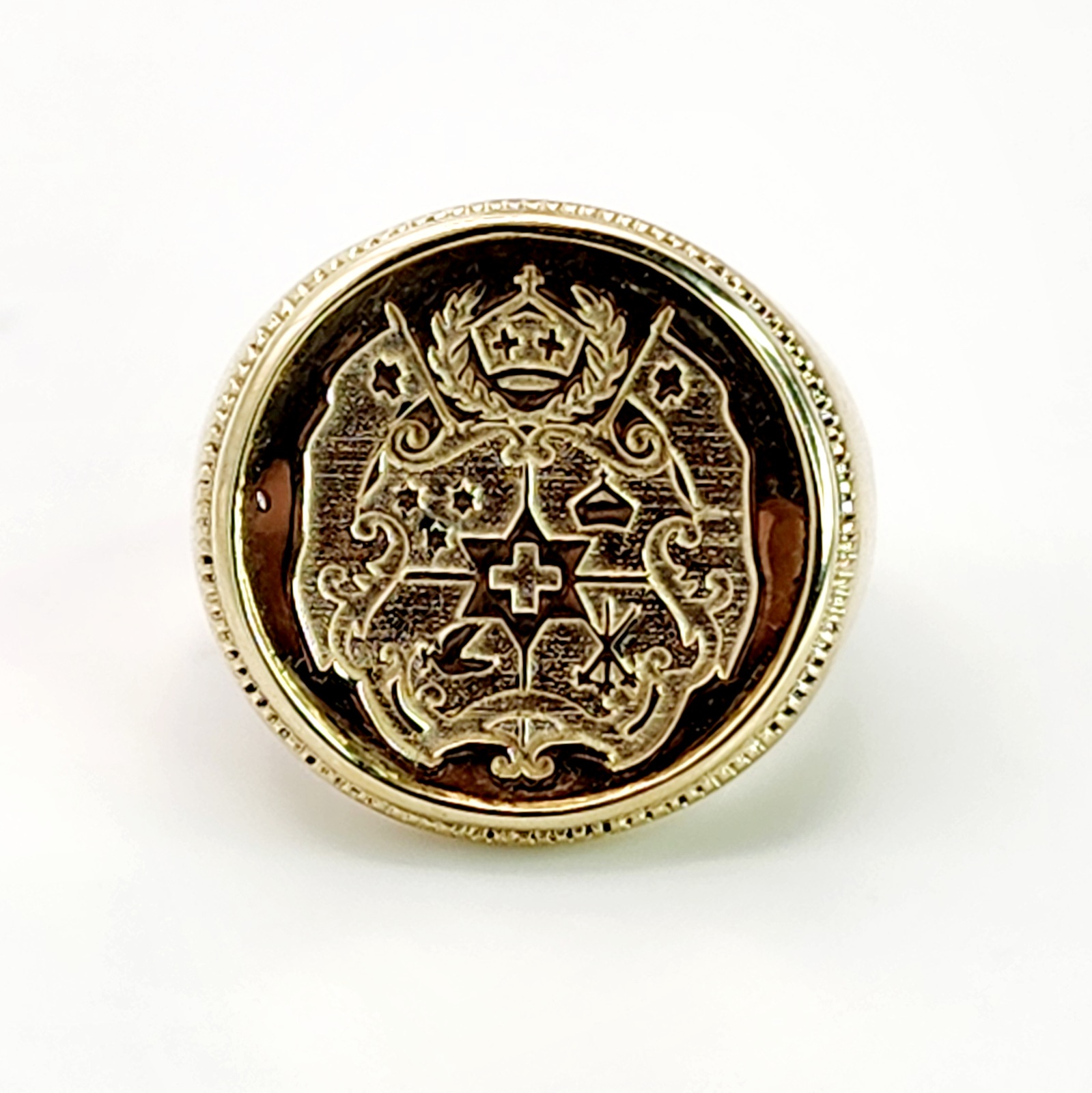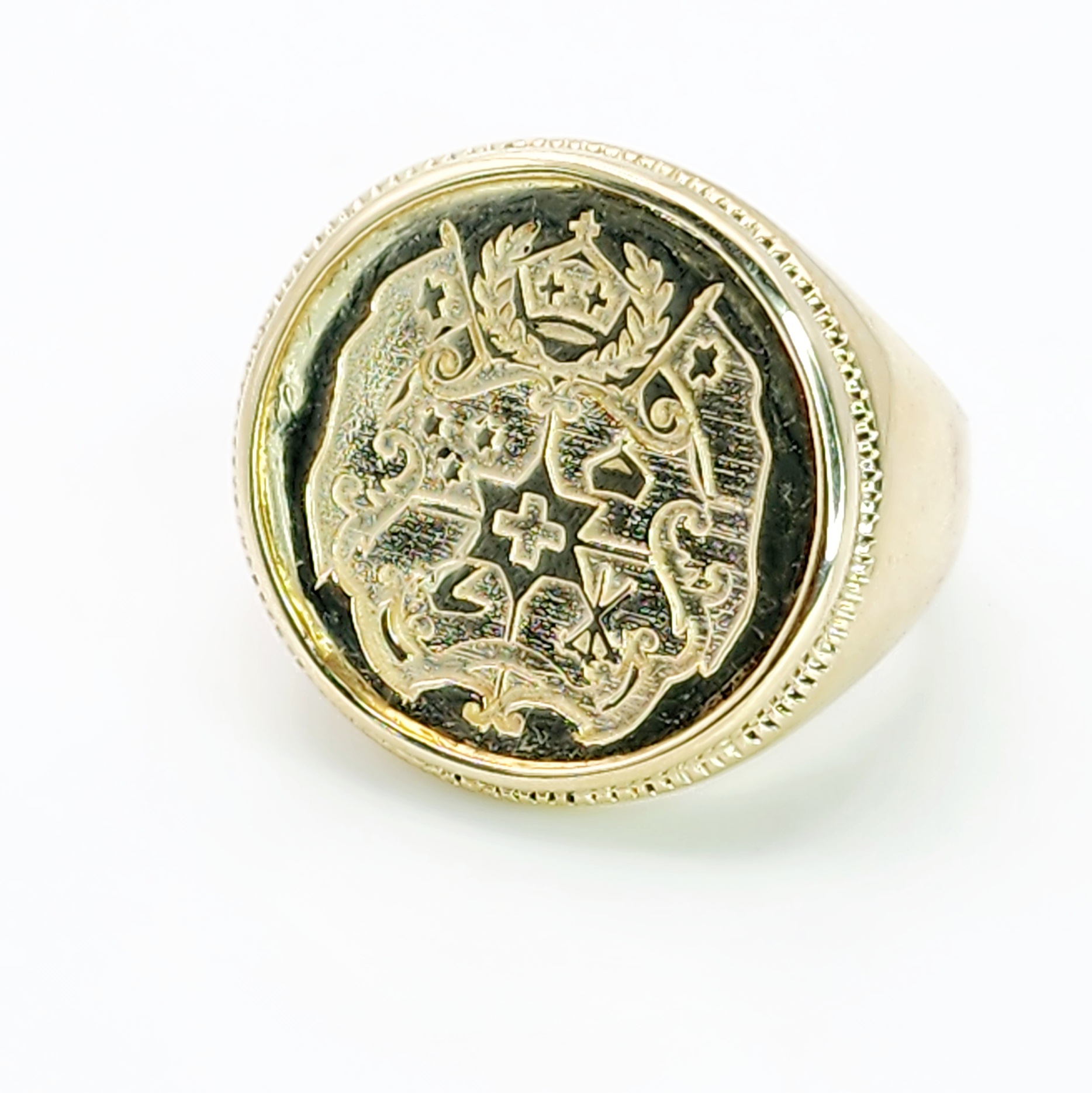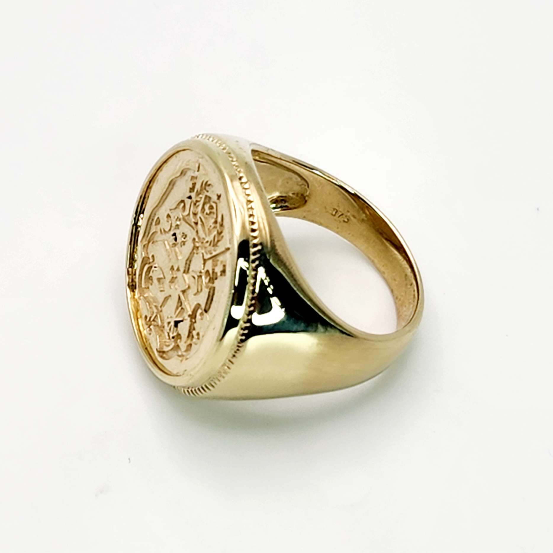 9ct Yellow Gold Tongan Sila Coin Ring with Solid Ring Mount