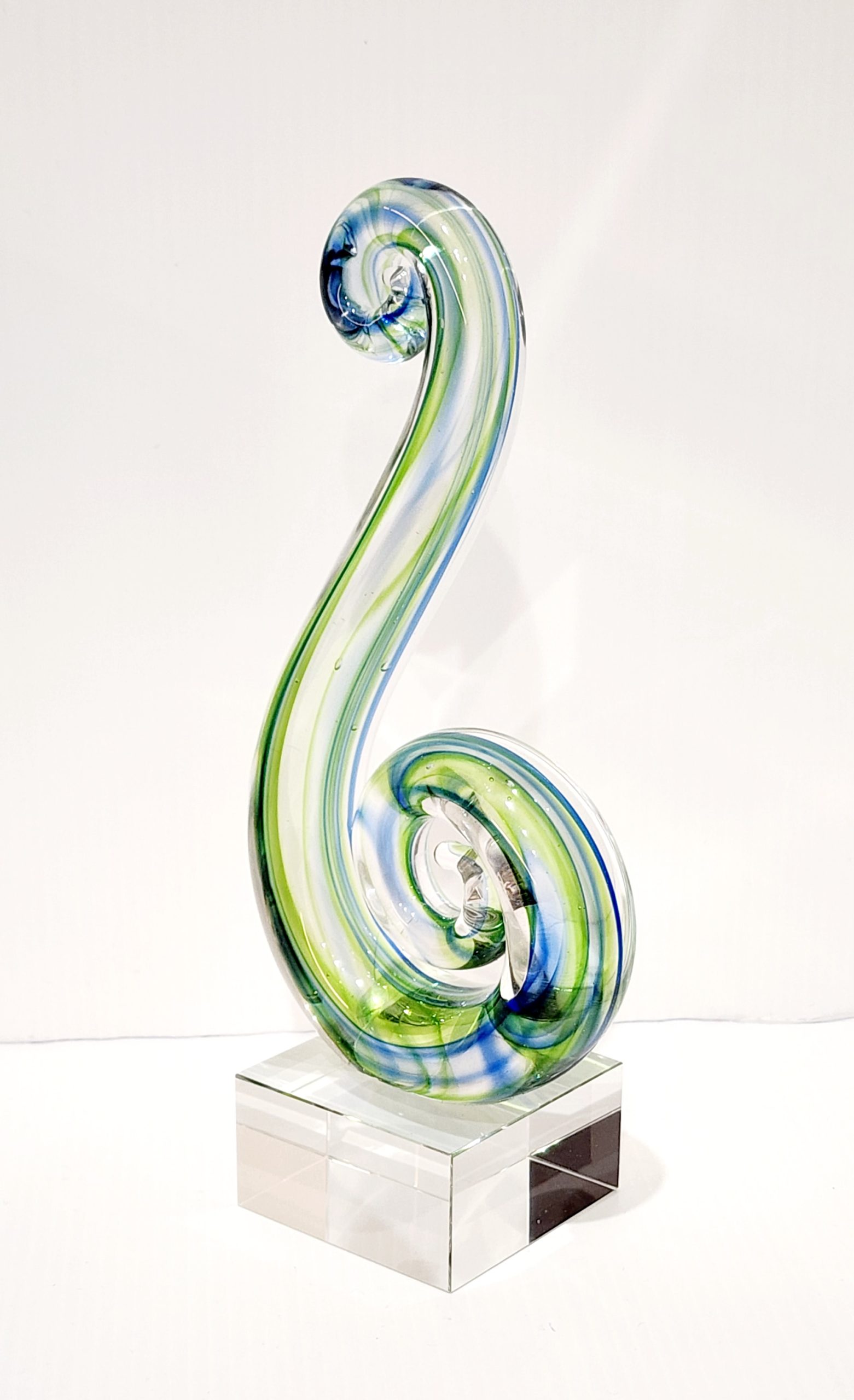 Beautiful Maori Design Double Koru Green & Blue Glass Award / Trophy – 180mm High