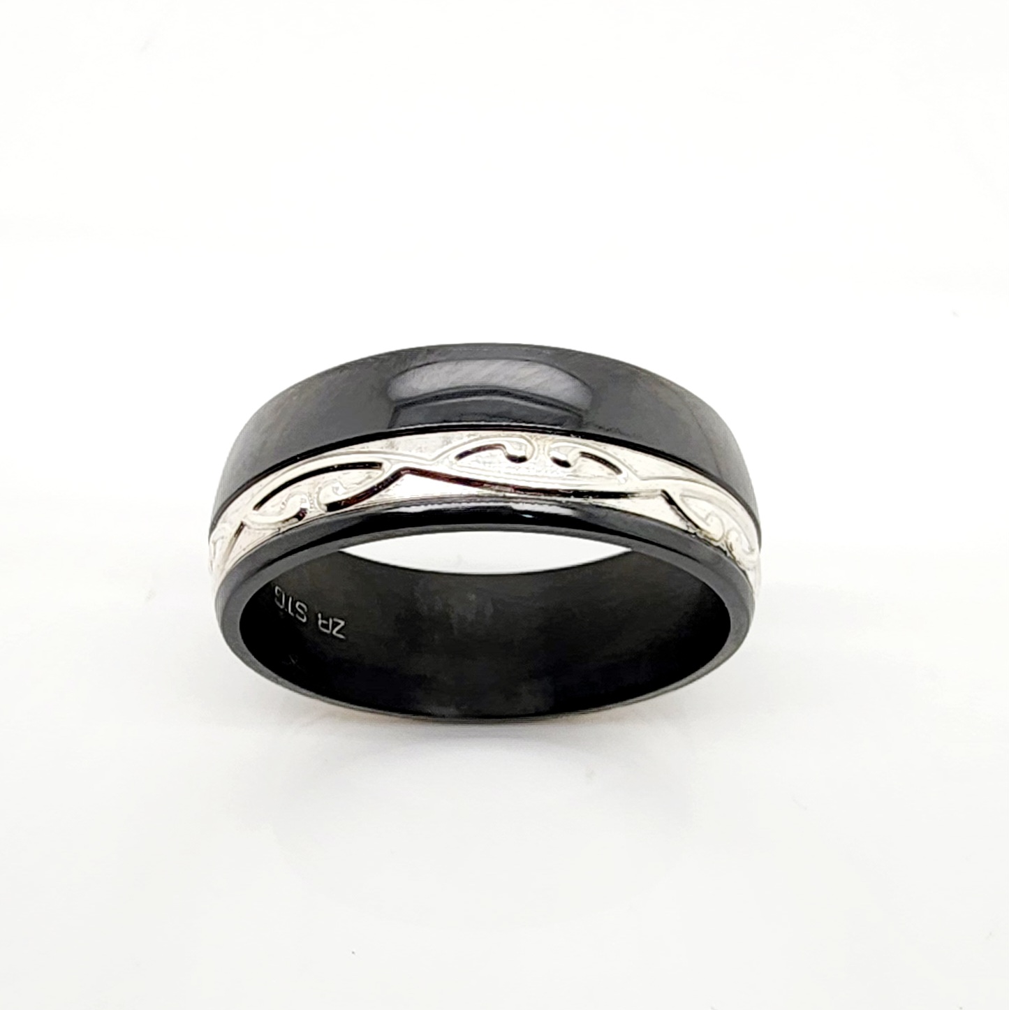 Black Zirconium Band 8mm Wide with Celtic Knotwork