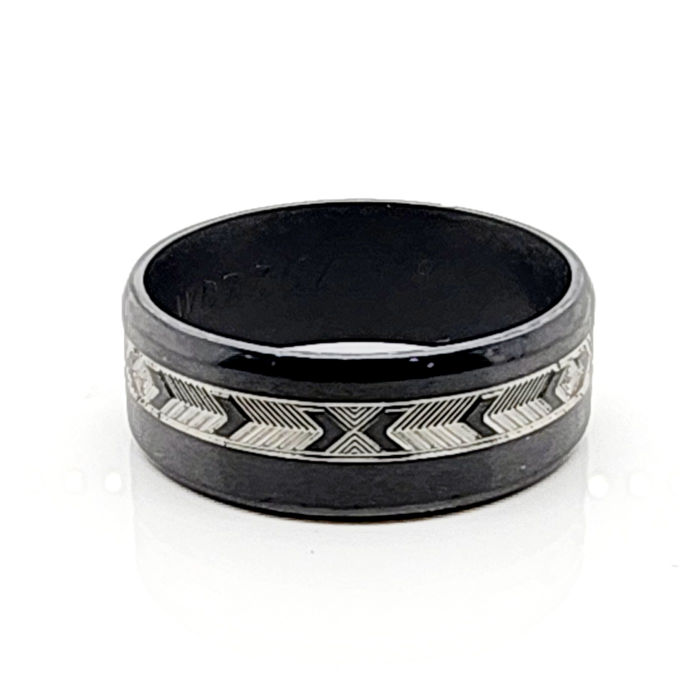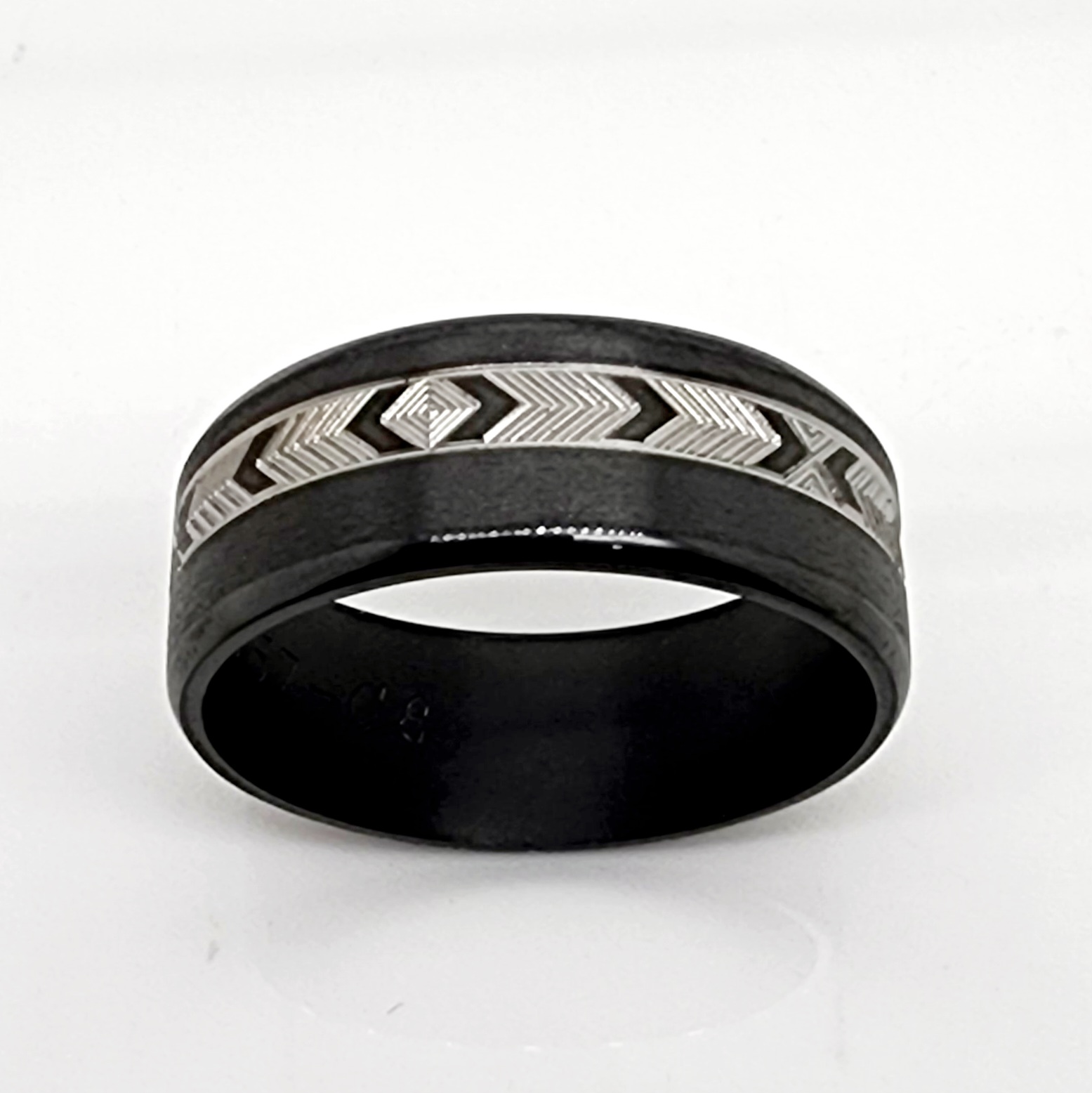 Black Zirconium Band 8mm Wide with Greek Inspired Patterns Engraved