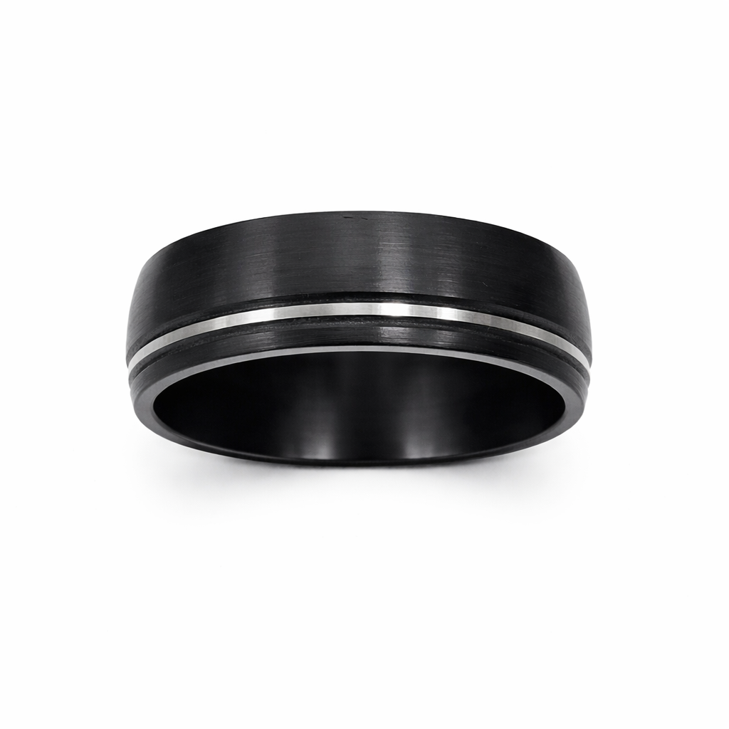 Black Zirconium Half Round Ring with Silver-Grey Groove, 8.3mm Modern Men’s Wedding Band – WD658Z-C8-MD-ZB