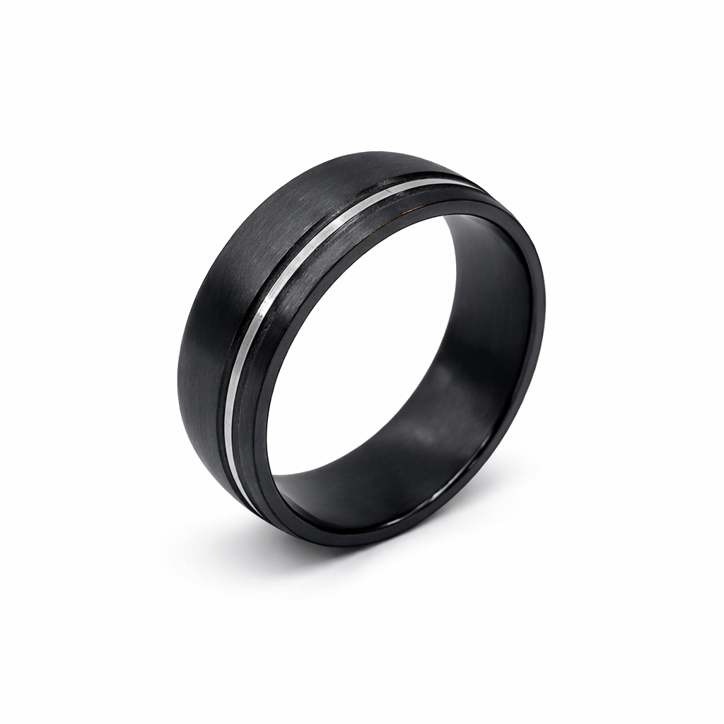 This striking Black Zirconium Ring combines modern engineering with refined minimalist design. Crafted from durable zirconium, the ring features a deep black finish created through a specialised heat treatment process that transforms the surface into a strong ceramic-like layer.