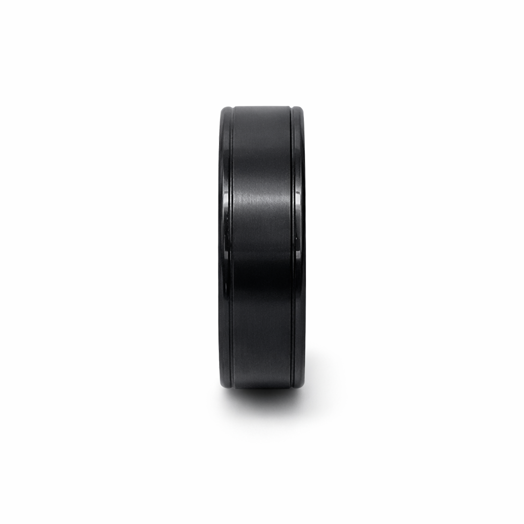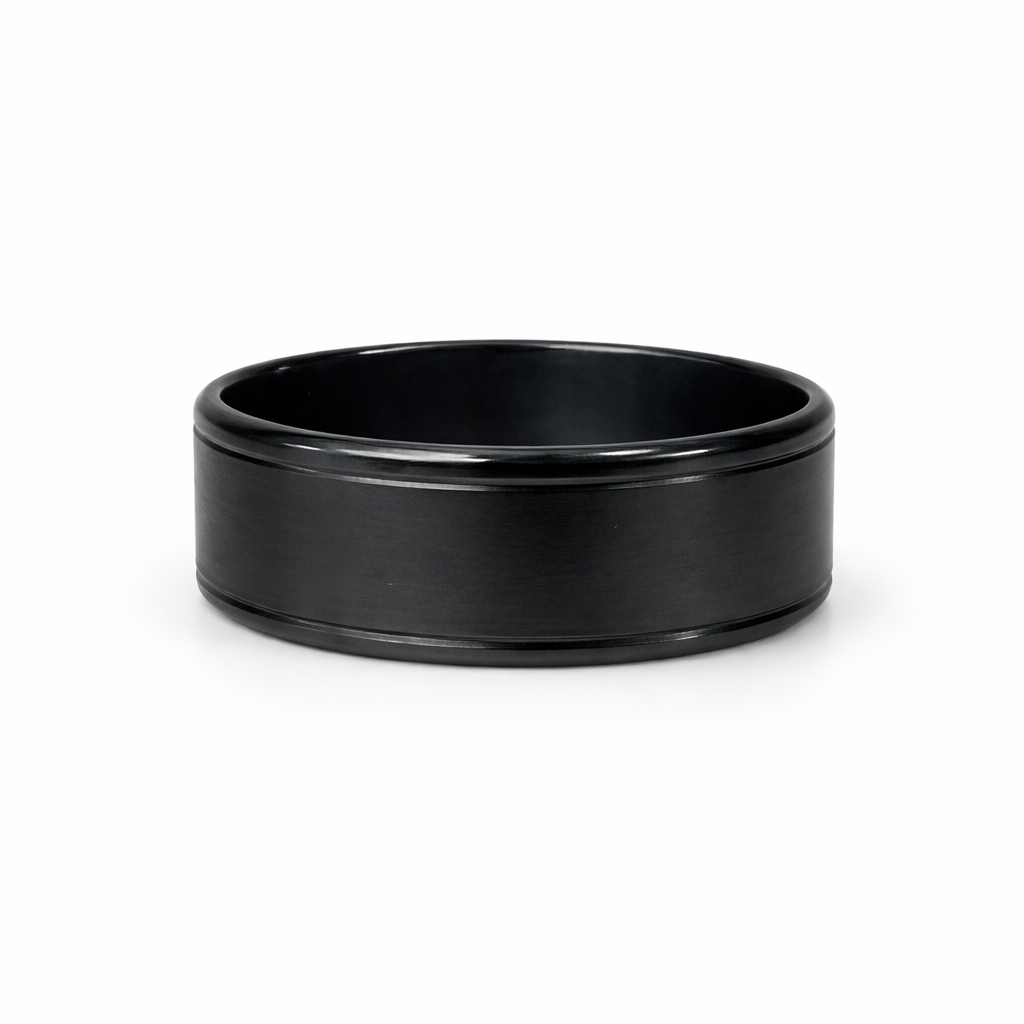 Black Zirconium Sanded Finish Ring, 8mm Flat Profile with Double Edge Grooves | Modern Men’s Wedding Band – WD701Z-C8-MD-ZB