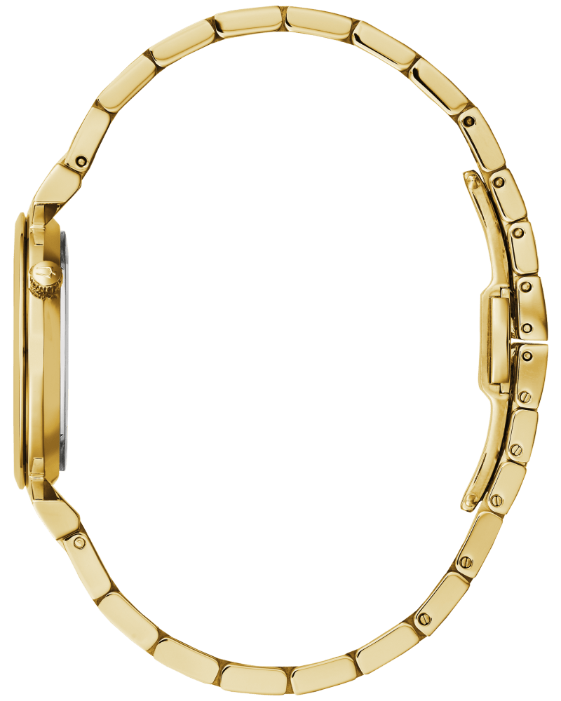 Inspired by Bulova heritage timepieces, the gold-tone stainless steel Regatta features a white mother-of-pearl dial set with 11 diamonds, the crown at the 2 o?clock position, and unique angled lugs. Flat sapphire crystal, slim quartz movement, and water resistance to 30 meters.