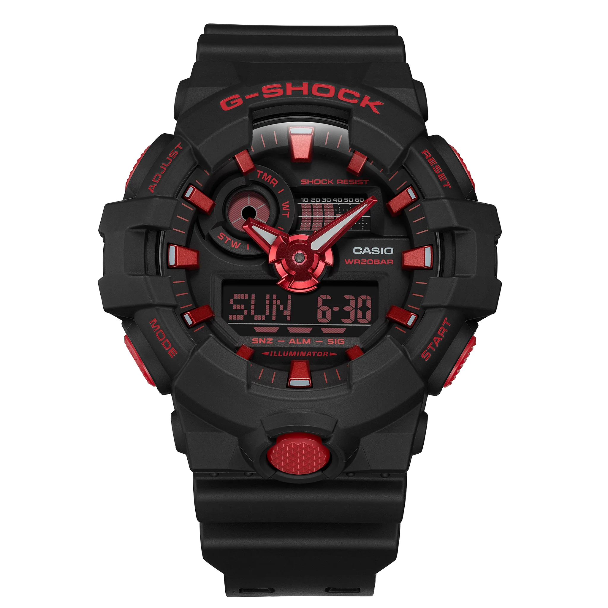 Make a bold, powerful statement with the Ignite Red line in the iconic black and fiery red that embody the ultimate toughness of the G-SHOCK brand.