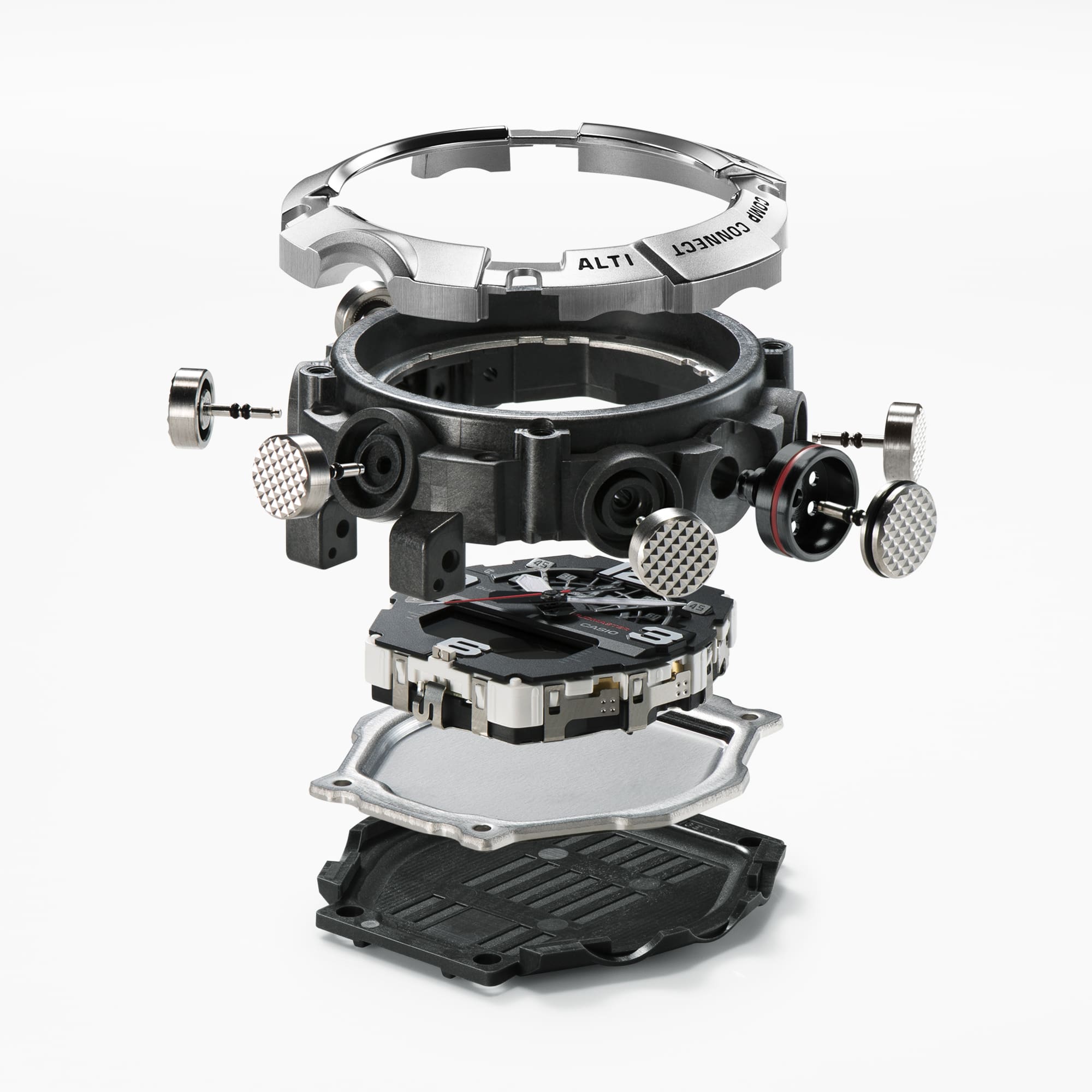 The MUDMASTER GG-B100X employs high rigidity carbon for the carbon fiber-reinforced case to keep damage and warping at bay and ensure a tight seal and excellent shock resistance. Featuring a filter to protect against mud, a stainless-steel panel back, and a back cover made of shock-resistant fine resin embedded with glass fibers, it provides a high level of resistance to dust and mud. The bezel also uses three layers of fine resin with carbon fiber inserts. The rugged design evokes the gasoline jerrycans mounted to off-road vehicles tough enough to traverse the most challenging terrain. Key components for the case and band are made with bio-based resin. Produced using renewable organic resources, this material is expected to help reduce environmental impact.
