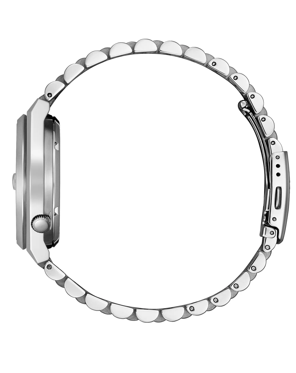 - BAND: Stainless Steel Bracelet, Push Button Buckle